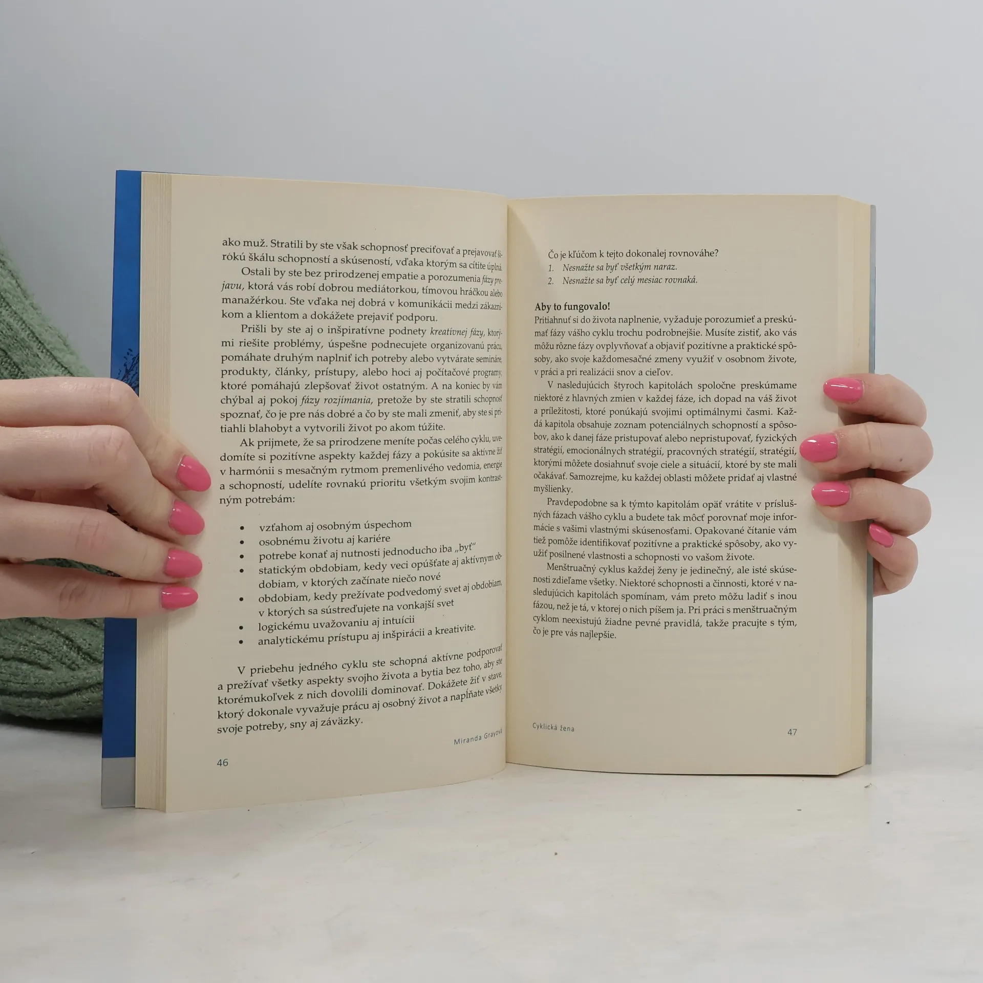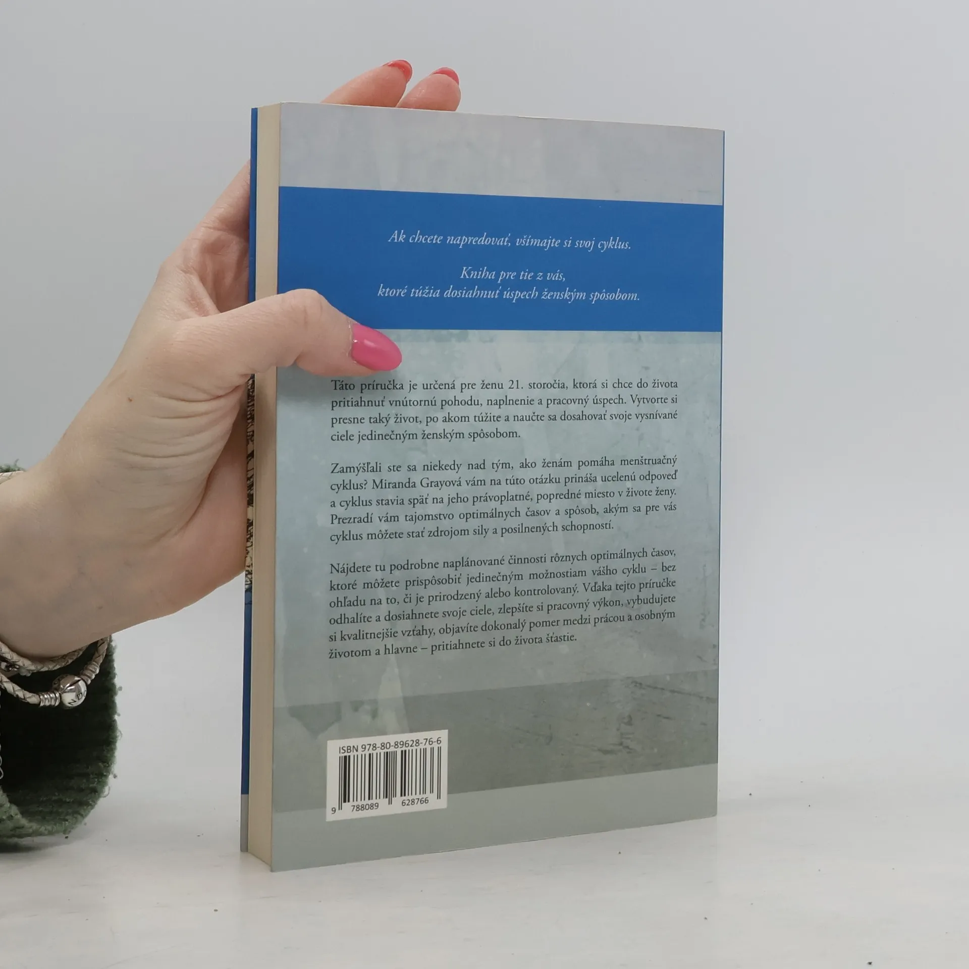 Táto príručka je určená pre ženu 21. storočia, ktorá si chce do života pritiahnuť vnútornú pohodu, naplnenie a pracovný úspech. Vytvorte si presne taký život, po akom túžite a naučte sa dosahovať svoje vysnívané ciele jedinečným ženským spôsobom. Zamýšľali ste sa niekedy nad tým,ako ženám pomáha menštruačný cyklus? Miranda Grayová vám na túto otázku prináša ucelenú odpoveď a cyklus stavia späť na jeho právoplatné, popredné miesto v živote ženy. Prezradí vám tajomstvo optimálnych časov a spôsob, akým sa pre vás cyklus môžete stať zdrojom sily a posilnených schopností. Nájdete tu podrobne naplánované činnosti rôznych optimálnych časov, ktoré môžete prispôsobiť jedinečným možnostiam vášho cyklu – bez ohľadu na to, či je prirodzený alebo kontrolovaný. Vďaka tejto príručke odhalíte a dosiahnete svoje ciele, zlepšíte si pracovný výkon, vybudujete si kvalitnejšie vzťahy, objavíte dokonalý pomer medzi prácou a osobným životom a hlavne – pritiahnete si do života šťastie.