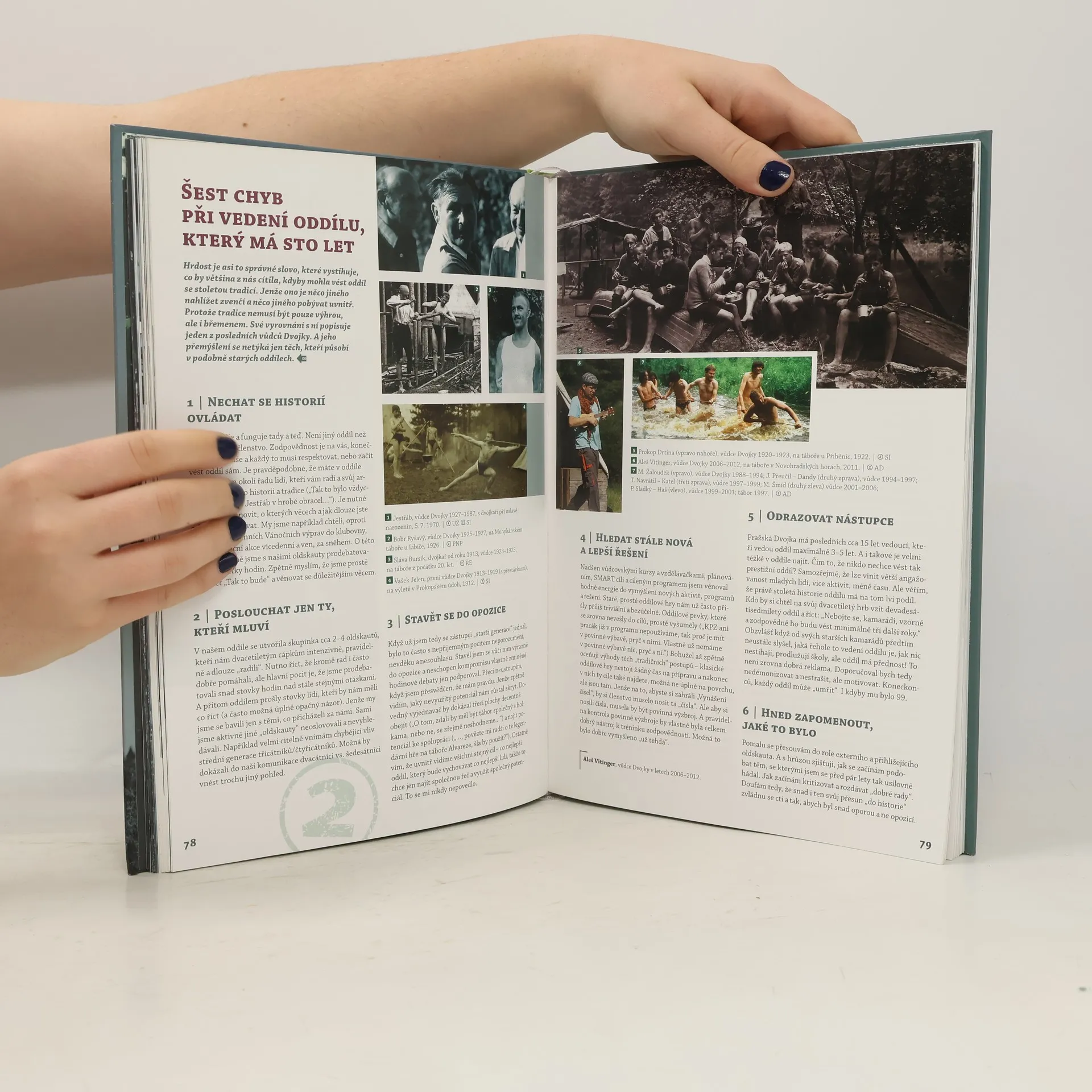 Sto let se ve skautských oddílech schází tisíce kluků a holek se svými vedoucími, aby prožívali společná dobrodružství a budovali přátelství na celý život. Dva z nich - 2. a 5. pražský oddíl - fungují dodnes. Většinu svého času byly výkladní skříní skautingu a inspirací pro stovky dalších společenství. Dlouho byly také spojeny s význačnými vůdci a spisovateli - Jaroslavem Foglarem a Jaroslavem Novákem - kteří Dvojku a Pětku desítky let vedli. Jejich činnost ilustruje obecné principy, na kterých stojí dobrý oddíl, i dobu, v níž se nacházeli. Kniha obsahuje více než šest set většinou neznámých fotografií a dokumentů.