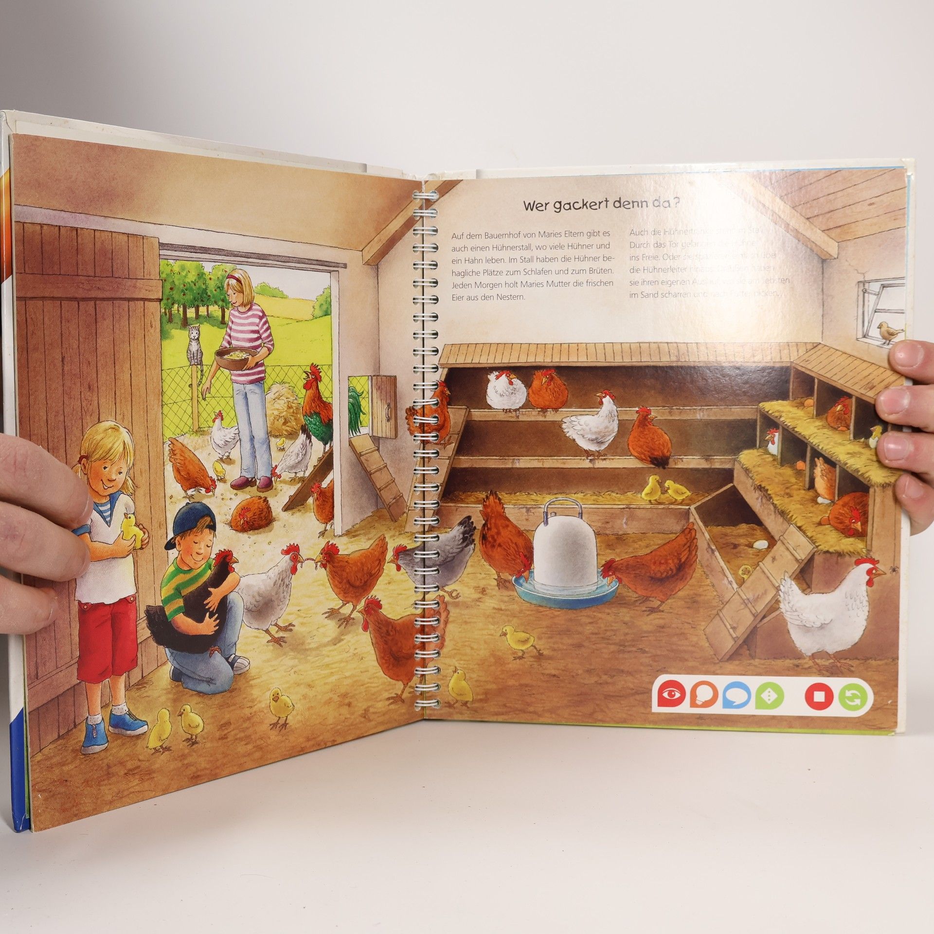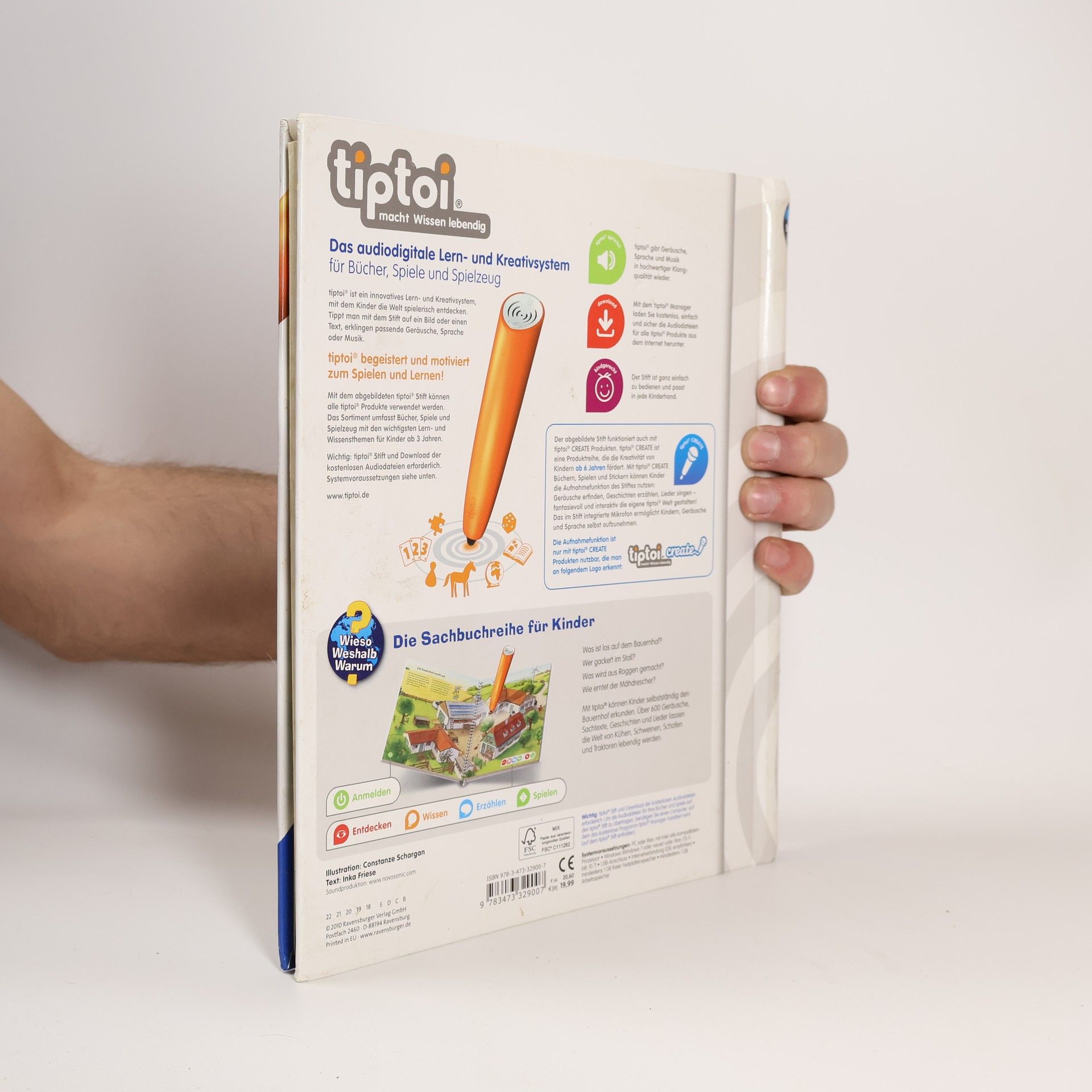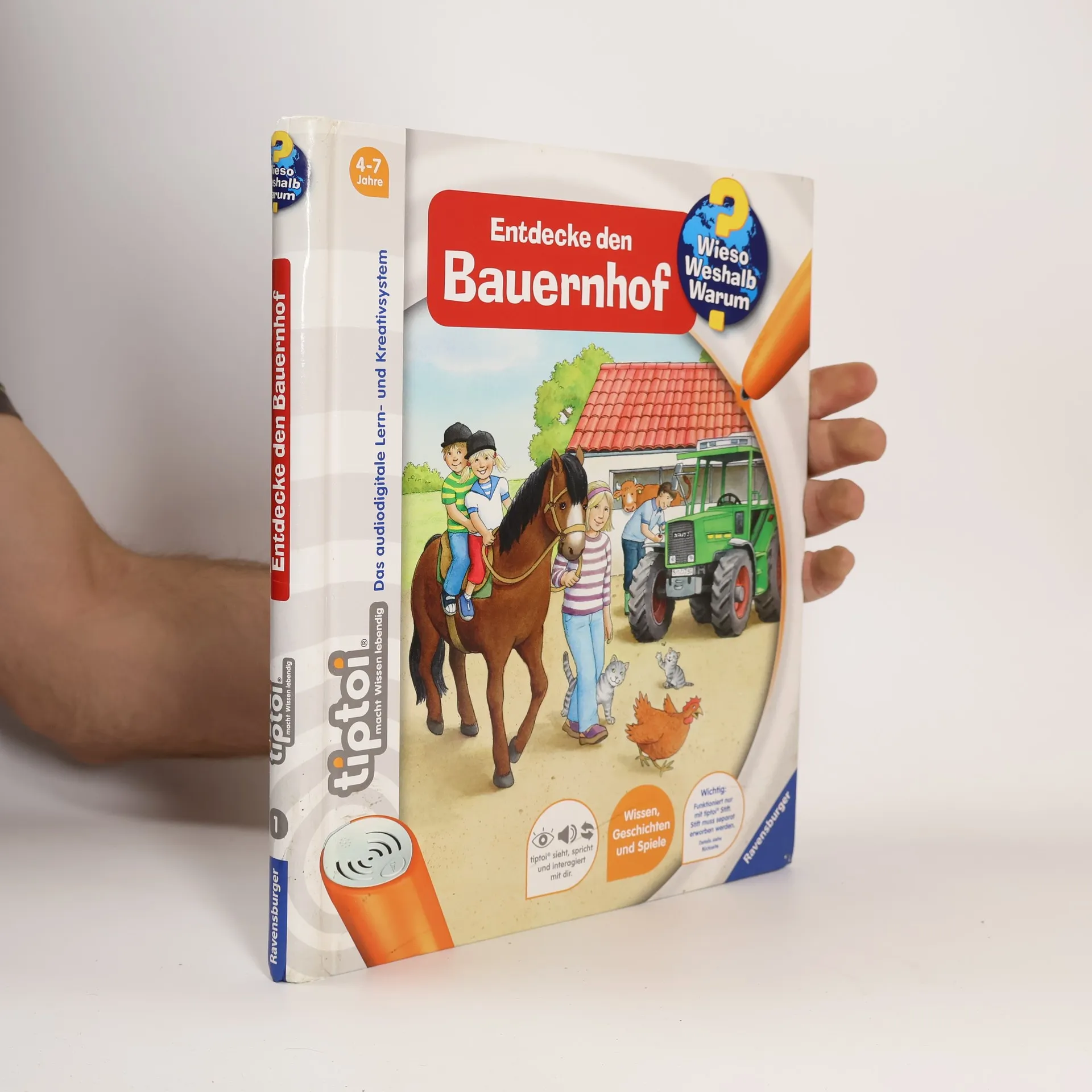 Willkommen auf dem Bauernhof! Hier kommen Tierliebhaber und Technikfans gleichermaßen auf ihre Kosten. Lebensechte Geräusche und faszinierende Bilder vermitteln spielerisch Grundwissen über Tiere, Pflanzen und Maschinen auf dem Bauernhof. Suchspiele, Kinderlieder und eine kunterbunte Wimmelseite laden zum Entdecken und Ausprobieren ein. tiptoi-Stift nicht enthalten.
