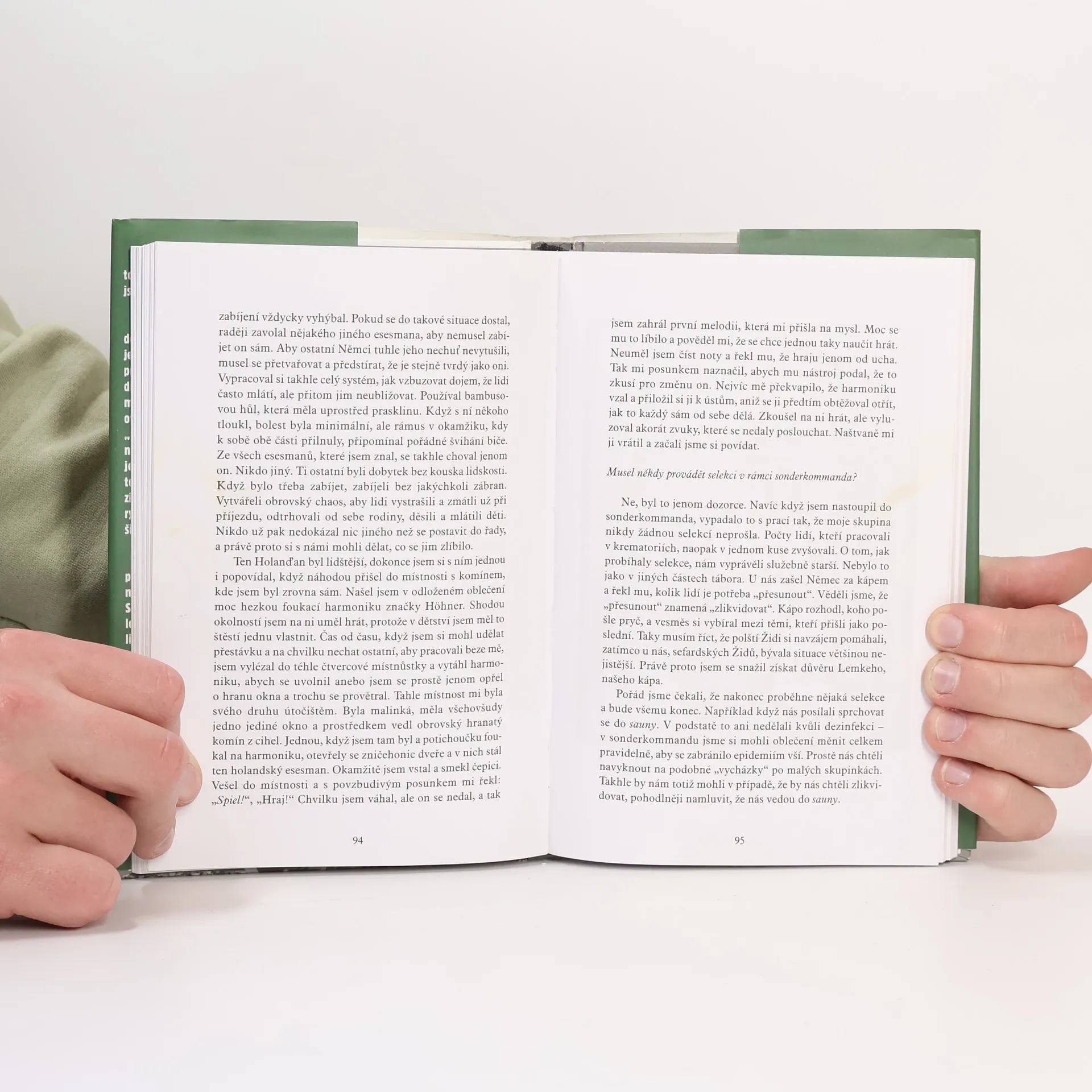 Podtitul: Svědectví přeživšího člena osvětimského sonderkommanda „Až doted’ jsem to nikomu nevyprávěl. Je to tak tíživé a děsivé, že mluvit o tom, co jsem viděl, mi stále dělá potíže…“ Autentické svědectví někdejšího člena židovského sonderkommanda v Osvětimi – jednoho z mála těch, kteří osvětimské peklo přežili, a jediného, kdo podal ucelenou pravdivou výpověď o smrticí mašinérii, které musel sloužit. Shlomo Venezia se odvážil otevřeně popsat i ty nejděsivější stránky své „práce“ a vynesl na světlo šokující podrobnosti, jež odhalují spáchaný zločin v celé jeho obludnosti. Jak konstatuje spoluautorka knihy Béatrice Prasquierová, Veneziovo svědectví je historický dokument, který vrhá světlo na nejtemnější stránku našich dějin.