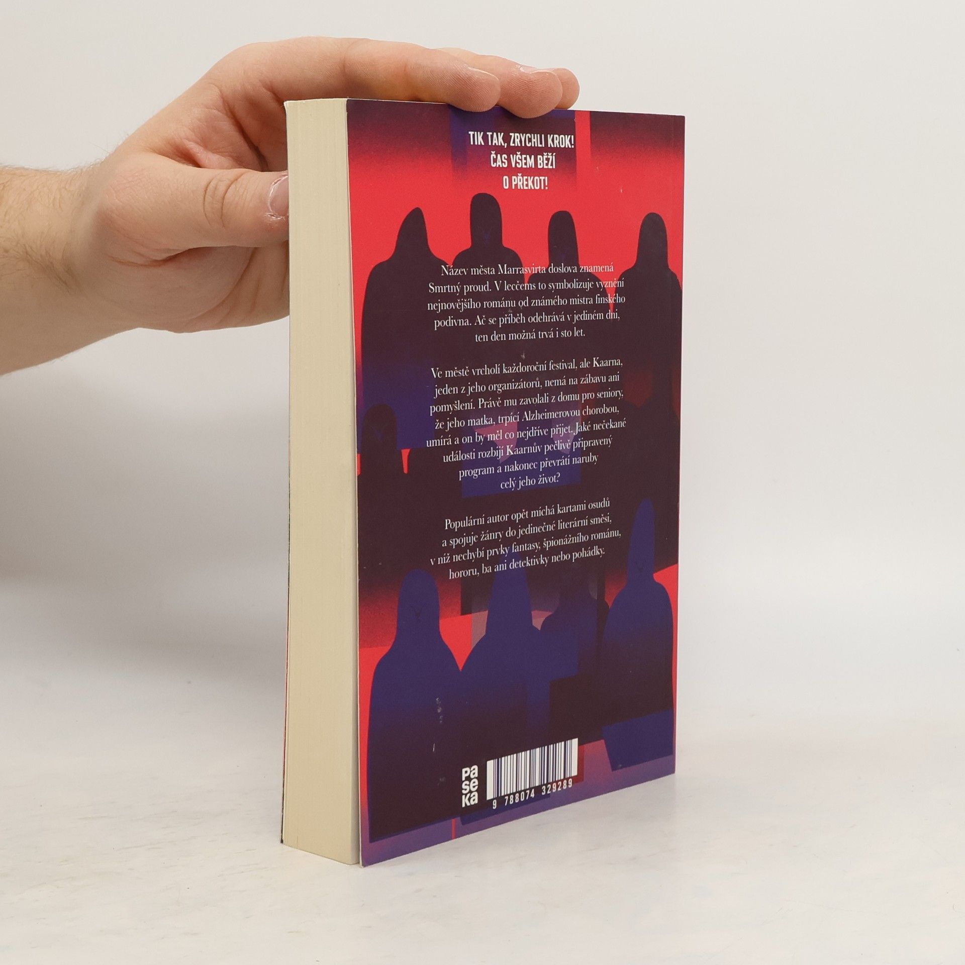 Název finského města Marrasvirta doslova znamená Smrtný proud, což v lecčems symbolizuje vyznění nejnovějšího románu od známého mistra finského podivna. Ač se příběh odehrává v jediném dni, ten den možná trvá i 100 let. Ve městě vrcholí každoroční festival, ale Kaarna, jeden z jeho organizátorů, nemá na zábavu ani pomyšlení. Právě mu zavolali z domu pro seniory, že jeho matka, trpící Alzheimerovou chorobou, umírá a on by měl co nejdříve přijet. Jaké nečekané události rozbijí Kaarnův pečlivě připravený program a nakonec převrátí naruby celý jeho život? Populární autor opět míchá kartami osudů a spojuje žánry do jedinečného finského podivna, v němž nechybí prvky fantasy, špionážního románu, hororu, ba ani detektivky nebo pohádky.