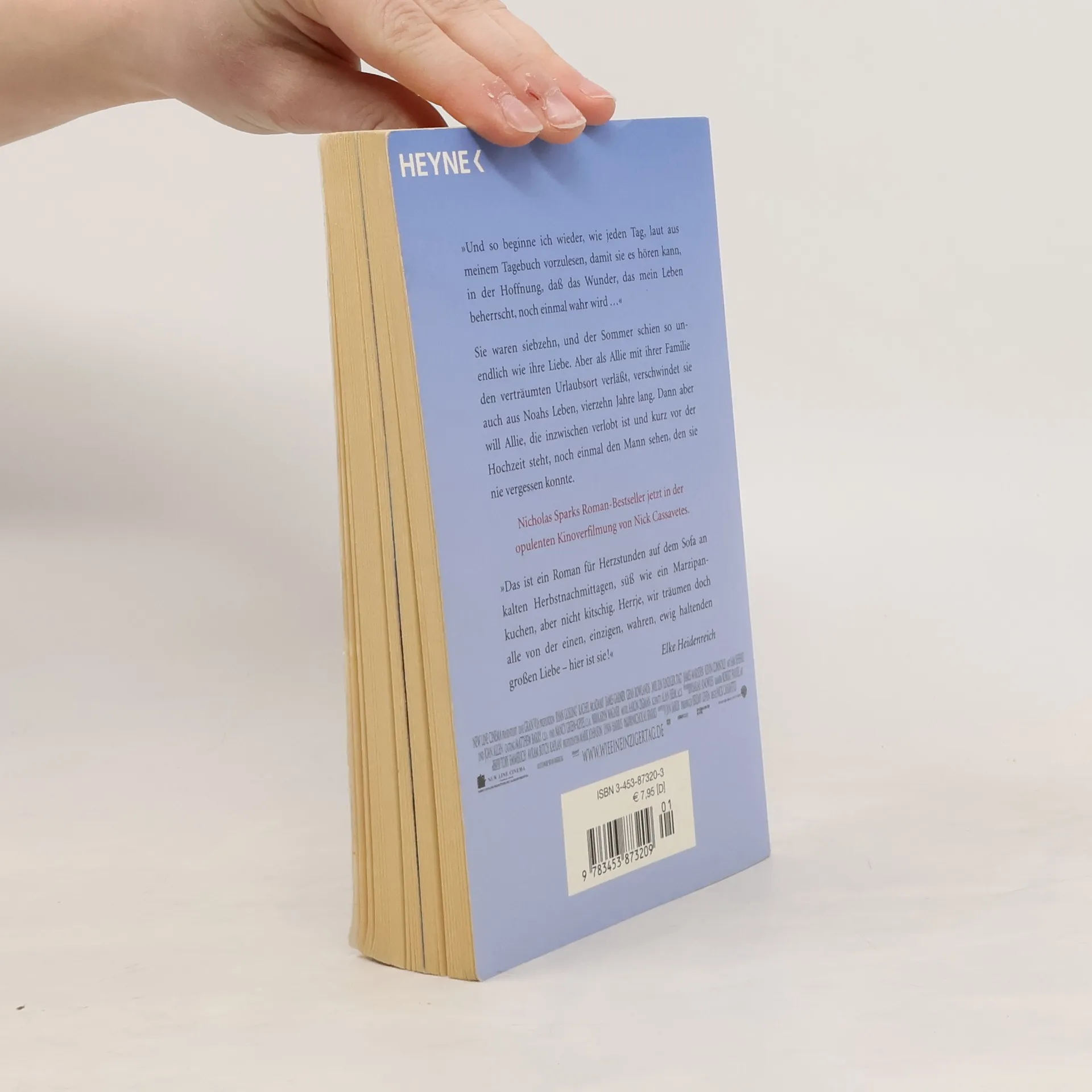 Sie sind siebzehn und verlieben sich auf den ersten Blick ineinander. Einen wunderschönen, scheinbar endlosen Sommer haben Allie und Noah gemeinsam. Dann muss Allie mit ihrer Familie den verträumten Urlaubsort verlassen - und verschwindet aus Noahs Leben. Vierzehn Jahre lang hört er nichts mehr von ihr. Und obwohl er sie verloren geben muss, kann er sich doch nie mehr neu binden. Bis Ally eines Tages plötzlich wieder vor ihm steht: Sie ist mit einem erfolgreichen Anwalt verlobt, aber bevor es zur Hochzeit kommt, will sie noch einmal den Mann sehen, den sie nie vergessen konnte ...