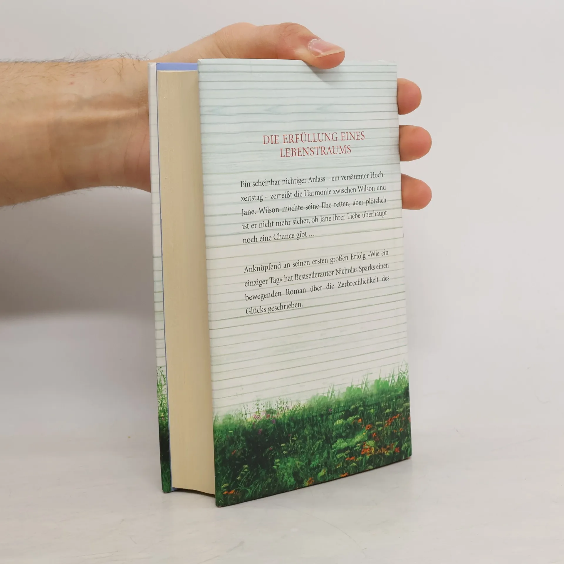 Die Erfüllung eines Lebenstraums Ein scheinbar nichtiger Anlass – ein versäumter Hochzeitstag – zerreißt die Harmonie zwischen Wilson und Jane. Wilson möchte seine Ehe retten – aber plötzlich ist er nicht mehr sicher, ob Jane ihrer Liebe überhaupt noch eine Chance geben will. Anknüpfend an seinen ersten großen Erfolg, „Wie ein einziger Tag“, hat Nicholas Sparks einen bewegenden Roman über die Zerbrechlichkeit des Glücks geschrieben. Seit knapp dreißig Jahren ist Wilson Lewis mit Jane verheiratet. Nach außen ist alles perfekt – mit drei erwachsenen Kindern und einem Haus in dem wunderschönen Städtchen New Bern haben sie sich fast jeden Traum erfüllt. Doch als Wilson ihren 29. Hochzeitstag vergisst, ist Janes Enttäuschung so maßlos, dass Wilson beginnt, an seiner Ehe zu zweifeln. Ist sie noch das, was sie einmal war? Hat er Jane zu sehr vernachlässigt, ihre Liebe für selbstverständlich genommen? Kann Jane ihn, den unromantisch veranlagten, praktisch denkenden Anwalt, überhaupt noch lieben? Wilson sucht Rat bei Janes Vater Noah, dessen einzigartige, fünfzig Jahre währende Liebe zu Allie jedem in ihrer Familie als Vorbild gilt. Bald versteht Wilson, dass er alles tun muss, um Janes Herz zurückzugewinnen. Er wird erneut um sie werben. und sie mit der Erfüllung ihres Lebenstraums überraschen.