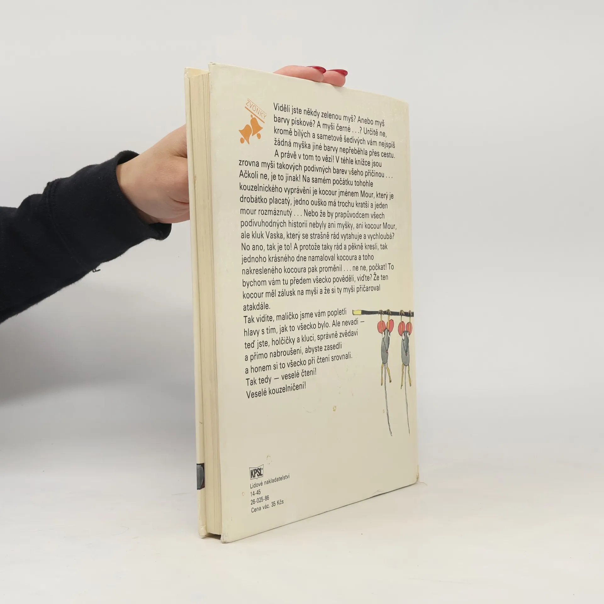 Viděli jste někdy zelenou myš? Anebo myš barvy pískové? A myši černé...? Určitě ne, kromě bílých a sametově šedivých vám nejspíše žádná myška jiné barvy nepřeběhla přes cestu. A právě v tom to vězí! V téhle knížce jsou zrovna myši takových podivných barev všeho příčinou...Ačkoliv ne, je to jinak! Na samém počátku tohodle kouzelnického vyprávění je kocour jménem Mour, který je drobátko placatý, jedno ouško má trochu kratší a jeden mour rozmáznutý...Nebo že by prapůvodcem všech podivuhodných historií nebyly ani myšky, ani kocour Mour, ale kluk Vaska, který se strašný rád vytahuje a vychloubá? No ano, tak je to! A protože taky rád a pěkně kreslí, tak jednoho krásného dne namaloval kocoura a toho nakresleného kocoura pak proměnil...ne ne, počkat! To bychom vám tu předem všecko pověděli, viďte? Že ten kocour měl zálusk na myši přičarované a tak dále.