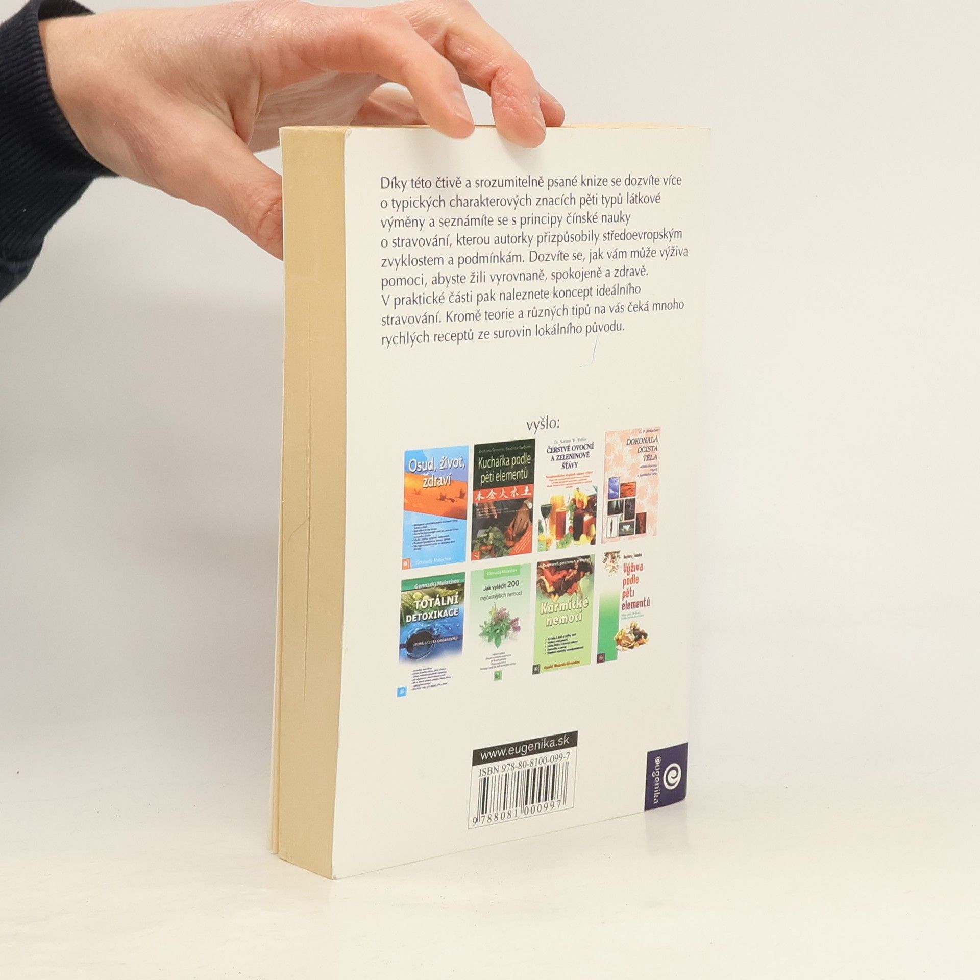 Díky této čtivě a srozumitelně psané knize se dozvíte více o typických charakterových znacích pěti typů látkové výměny a seznámíte se s principy čínské nauky o stravování, kterou autorky přizpůsobily středoevropským zvyklostem a podmínkám. Dozvíte se, jak vám může výživa pomoci, abyste žili vyrovnaně, spokojeně a zdravě. V praktické části pak naleznete koncept ideálního stravování. Kromě teorie a různých tipů na vás čeká mnoho rychlých receptů ze surovin lokálního původu.