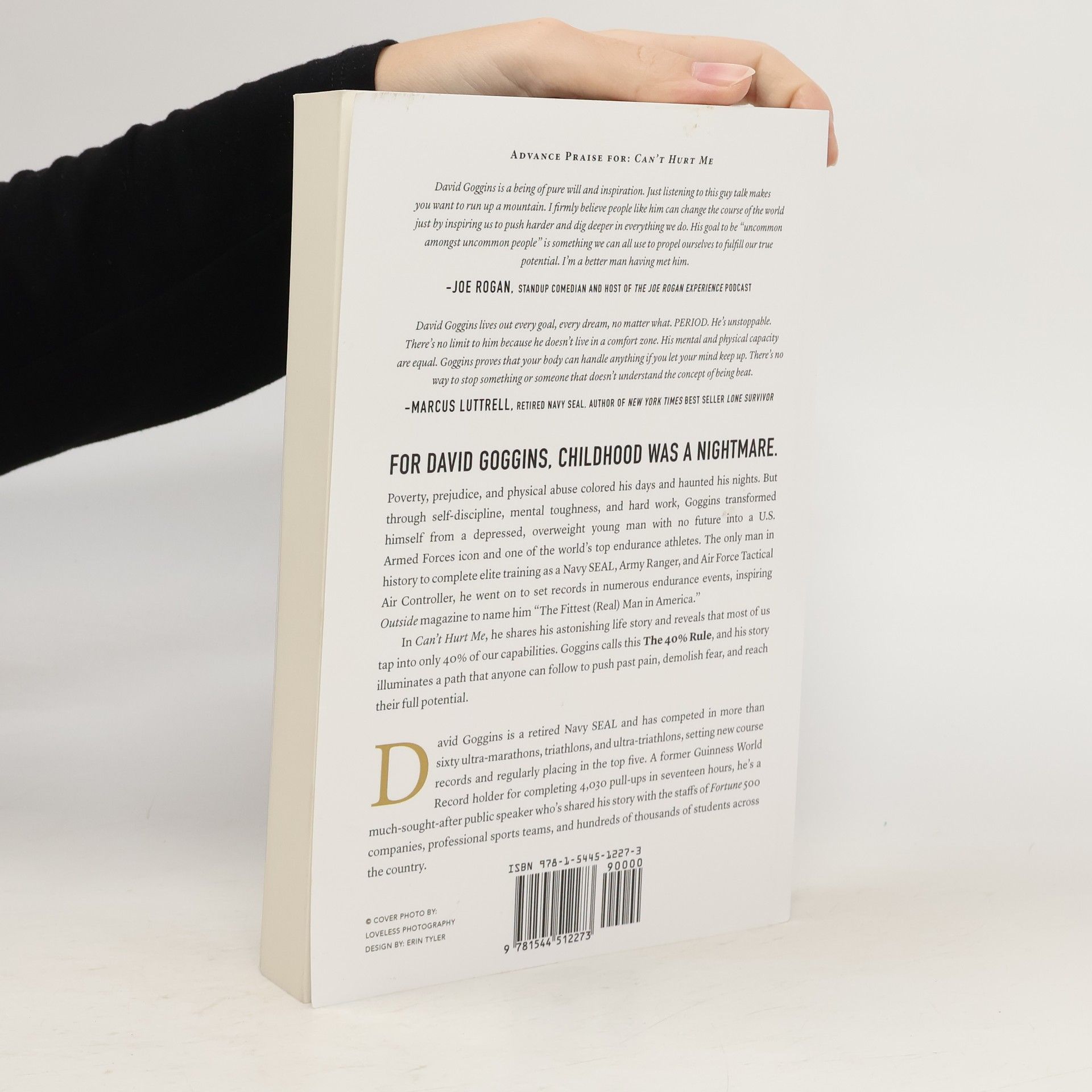 For David Goggins, childhood was a nightmare -- poverty, prejudice, and physical abuse colored his days and haunted his nights. But through self-discipline, mental toughness, and hard work, Goggins transformed himself from a depressed, overweight young man with no future into a U.S. Armed Forces icon and one of the world's top endurance athletes. The only man in history to complete elite training as a Navy SEAL, Army Ranger, and Air Force Tactical Air Controller, he went on to set records in numerous endurance events, inspiring Outside magazine to name him "The Fittest (Real) Man in America." In Can't Hurt Me, he shares his astonishing life story and reveals that most of us tap into only 40% of our capabilities. Goggins calls this The 40% Rule, and his story illuminates a path that anyone can follow to push past pain, demolish fear, and reach their full potential.