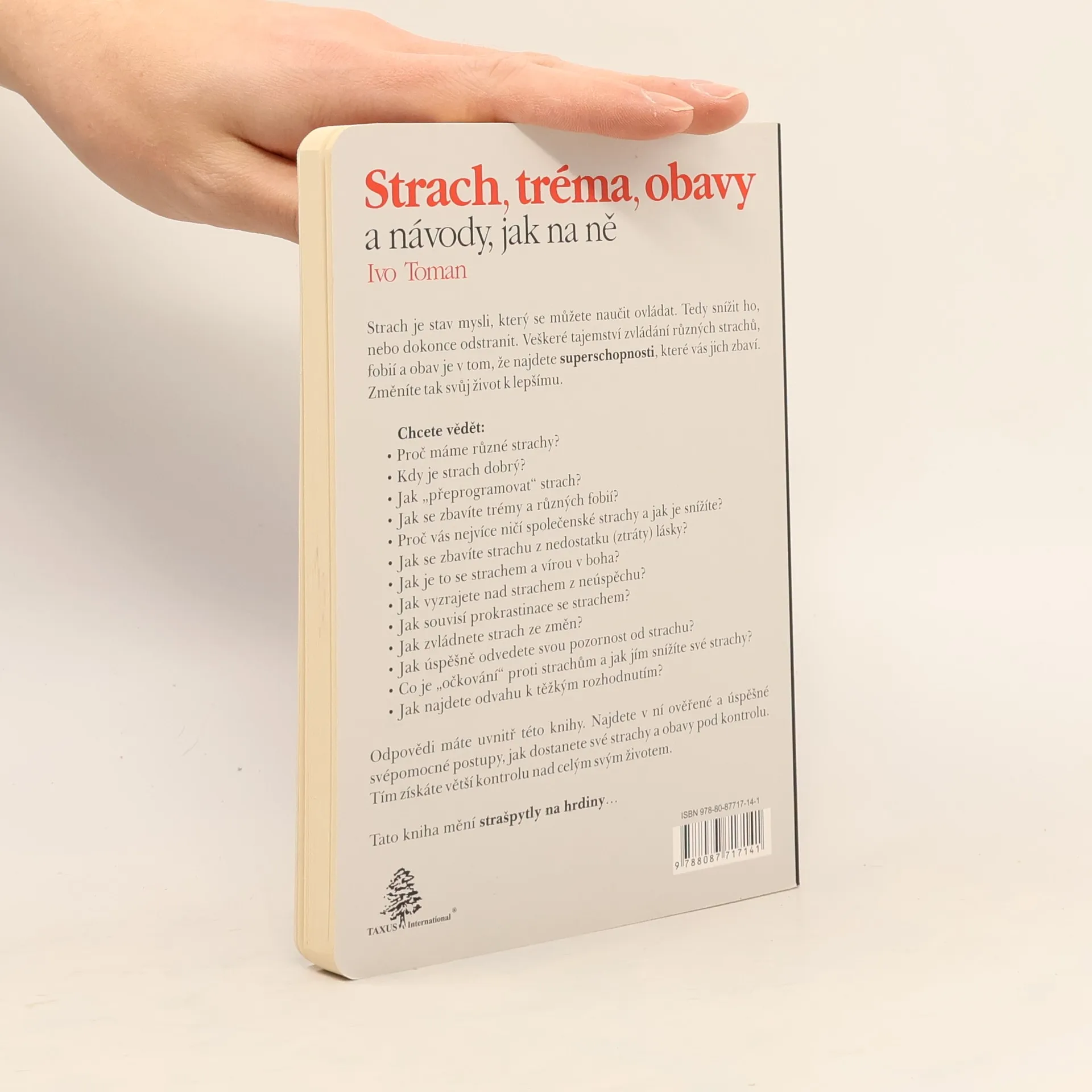 Strach je stav mysli, který se můžete naučit ovládat. Tedy snížit ho, nebo dokonce odstranit. Veškeré tajemství zvládání různých strachů, fobií a obav je v tom, že najdete superschopnosti, které vás jich zbaví. Změníte tak svůj život k lepšímu. Chcete vědět: • Proč máme různé strachy? • Kdy je strach dobrý? • Jak "přeprogramovat" strach? • Jak se zbavíte trémy a různých fobií? • Proč vás nejvíce ničí společenské strachy a jak je snížíte? • Jak se zbavíte strachu z nedostatku (ztráty) lásky? • Jak je to se strachem a vírou v boha? • Jak vyzrajete nad strachem z neúspěchu? • Jak souvisí prokrastinace se strachem? • Jak zvládnete strach ze změn? • Jak úspěšně odvedete svou pozornost od strachu? • Co je "očkování" proti strachům a jak jím snížíte své strachy? • Jak najdete odvahu k těžkým rozhodnutím? Odpovědi máte uvnitř této knihy. Najdete v ní ověřené a úspěšné svépomocné postupy, jak dostanete své strachy a obavy pod kontrolu. Tím získáte větší kontrolu nad celým svým životem. Tato kniha mění strašpytly na hrdiny…
