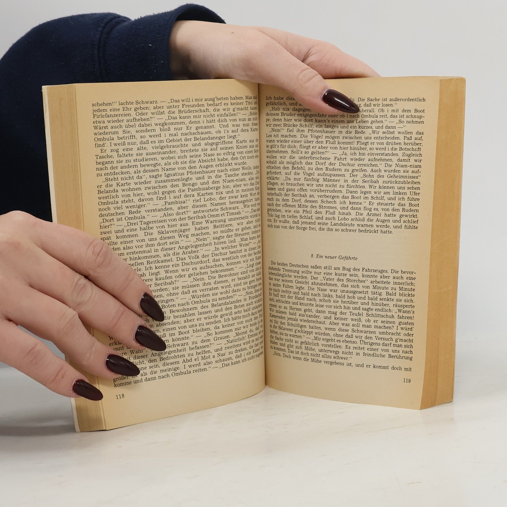 Die Brüder Emil und Josef Schwarz, zwei deutsche Forschungsreisende, begegnen im Sudan nicht nur dem berüchtigten Sklavenjäger Abu el Mot, sondern entkommen durch Mut, List und Zusammenhalt auch so mancher gefahrvollen Situation. So überlebt Emil einen Anschlag der Araber vom Stamm der Homr, die auf Abu el Mots Anweisung handeln, und erfährt schließlich, dass sich dieser in Seribah Omm et Timsah, südlich von Faschoda, niedergelassen hat. Auch Josef Schwarz passiert den Ort per Schiff auf dem Nil und fällt schließlich dem Sklavenjäger in die Hände, der das Dorf Ombula überfallen und dessen Bewohner versklaven will. Kann es Emil gelingen, seinen Bruder zu befreien und gemeinsam mit diesem und den zahlreichen Verbündeten der Sklaverei ein Ende zu setzen? Der spannungsvoll konstruierte Text wird durch ein erläuterndes Glossar ergänzt und macht den Roman damit auch einem jugendlichen Lesepublikum zugänglich.