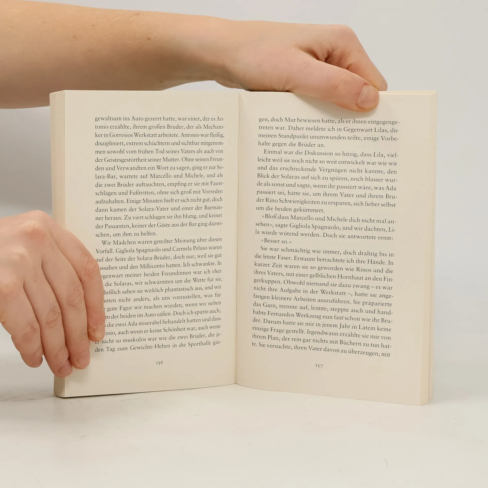 In einem volkstümlichen Viertel Neapels wachsen sie auf, derbes Fluchen auf den Straßen, Familien, die sich seit Generationen befehden, das Silvesterfeuerwerk artet in eine Schießerei aus. Hier gehen sie gemeinsam in die Schule, die unangepasste, draufgängerische Lila und die schüchterne, beflissene Elena, beide darum wetteifernd, besser zu sein als die andere. Bis Lilas Vater sein brillantes Kind zwingt, in der Schusterei mitzuarbeiten, und Elena mit dem bohrenden Verdacht zurückbleibt, das Leben zu leben, das eigentlich ihrer besten, ihrer so unberechenbaren Freundin zugestanden hätte.