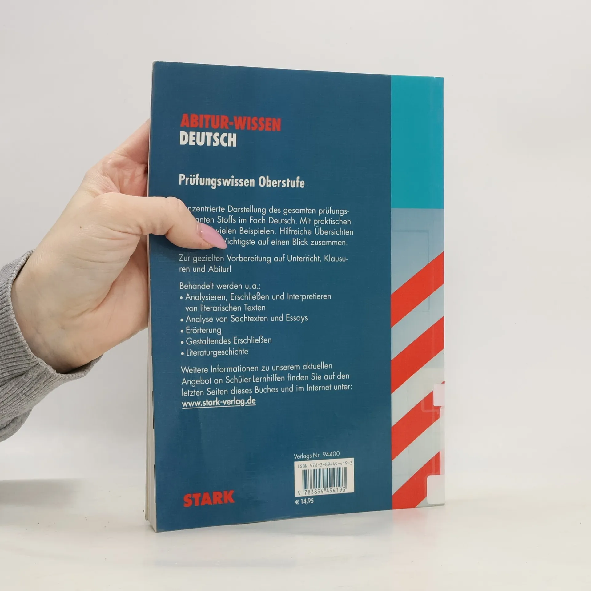 Konzentrierte Darstellung des gesamten prüfungsrelevanten Stoffs im Fach Deutsch. Mit praktischen Tipps und vielen Beispielen. Hilfreiche Übersichten fassen das Wichtigste auf einen Blick zusammen. Zur gezielten Vorbereitung auf Unterricht, Klausuren und Abitur! Behandelt werden u. a.: Analysieren, Erschließen und Interpretieren von literarischen Texten Analyse von Sachtexten Erörterung Literaturgeschichte