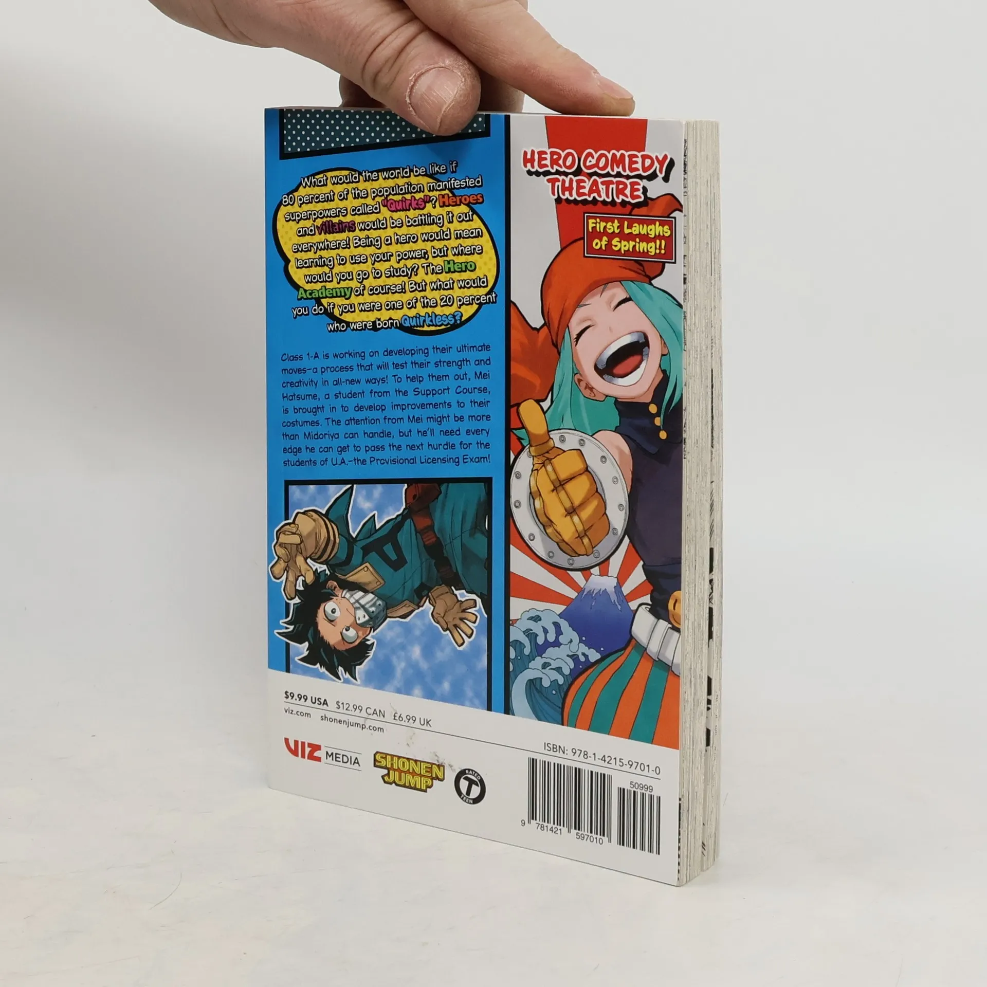 Midoriya inherits the superpower of the world’s greatest hero, but greatness won’t come easy. What would the world be like if 80 percent of the population manifested superpowers called “Quirks”? Heroes and villains would be battling it out everywhere! Being a hero would mean learning to use your power, but where would you go to study? The Hero Academy of course! But what would you do if you were one of the 20 percent who were born Quirkless? Class 1-A is working on developing their ultimate moves—a process that will test their strength and creativity in all-new ways! To help them out, Mei Hatsume, a student from the Support Course, is brought in to develop improvements to their costumes. The attention from Mei might be more than Midoriya can handle, but he’ll need every edge he can get to pass the next hurdle for the students of U.A.—the Provisional Licensing Exam!
