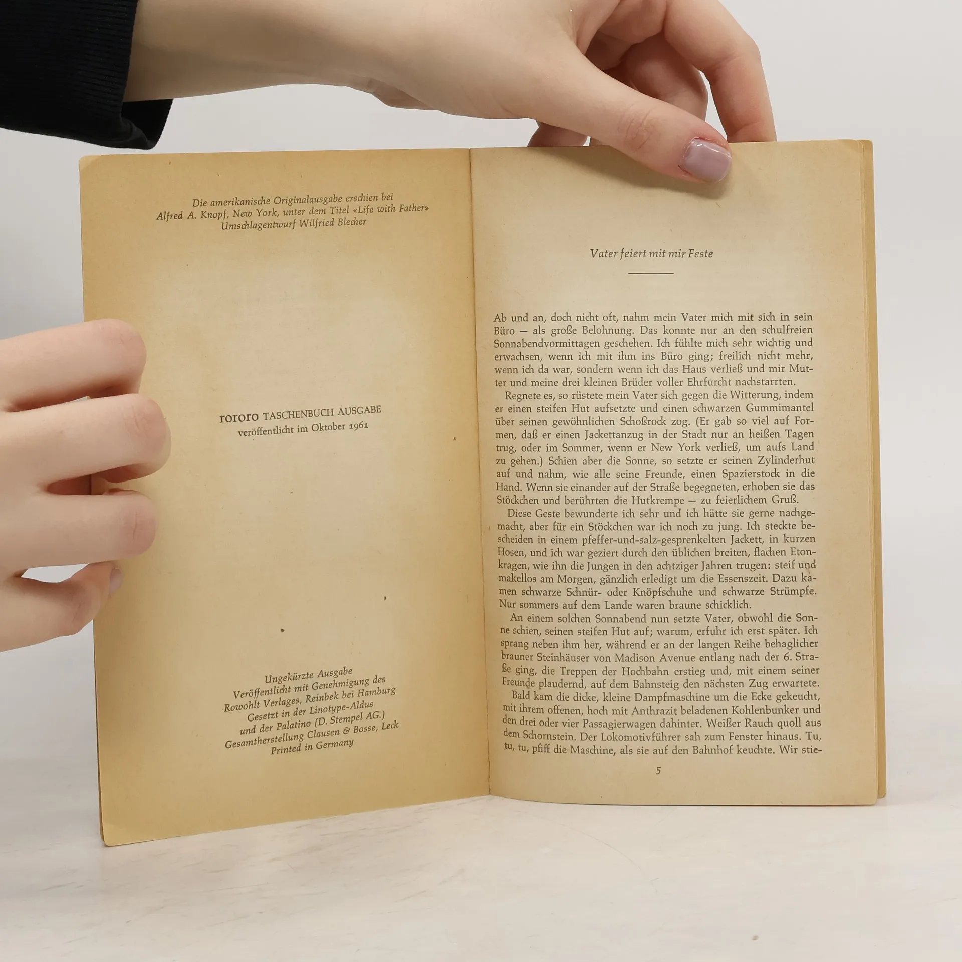Mit heiterem Spott und voller Liebe beschreibt Clarence Day das temperamentvolle Leben in seinem Elternhaus im New York der Jahrhundertwende. Seine Texte machten ihn über Nacht bekannt. Die Bühnenfassung wurde einer der größten Broadway-Erfolge aller Zeiten. Im Mittelpunkt steht der polternde „Herr Vater“, Clarence Day senior, der gegen die Plagen des Familienlebens aufbegehrt: gegen andere Meinungen, Verwandtenbesuch, Köchinnen oder diese neuartige Erfindung namens Telefon. Eine kluge, bissige, warmherzige und zeitlose Schilderung der ganz alltäglichen Klippen des Zusammenlebens, übersetzt von dem damals bereits weltbekannten Hans Fallada, der den wunderbar beiläufigen Humor Days mühelos ins Deutsche überträgt.