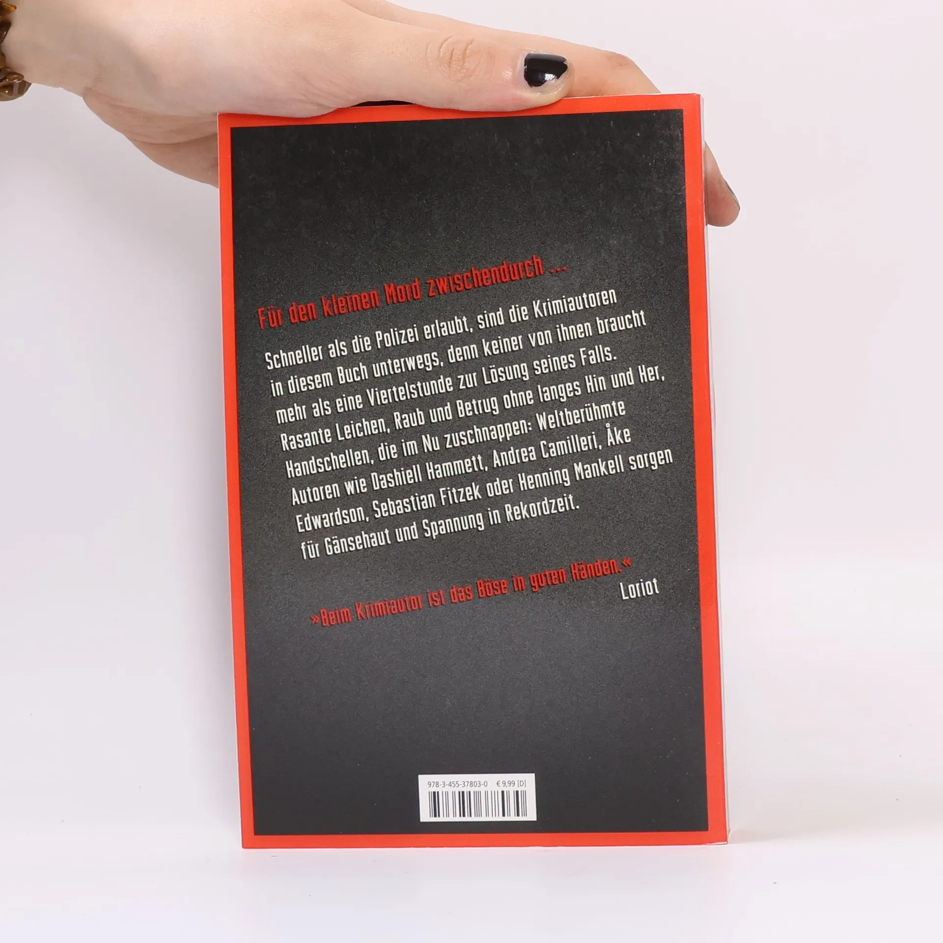 Schneller als die Polizei erlaubt, sind die Krimiautoren in diesem Buch unterwegs, denn keiner von ihnen braucht mehr als eine Viertelstunde zur Lösung seines Falls. Rasante Leichen, Raub und Betrug ohne langes Hin und Her, Handschellen, die im Nu zuschnappen: Weltberühmte Autoren wie Agatha Christie, Friedrich Glauser, Dashiell Hammett, Andrea Camilleri, Åke Edwardson oder Henning Mankell sorgen für Gänsehaut und Spannung in Rekordzeit.