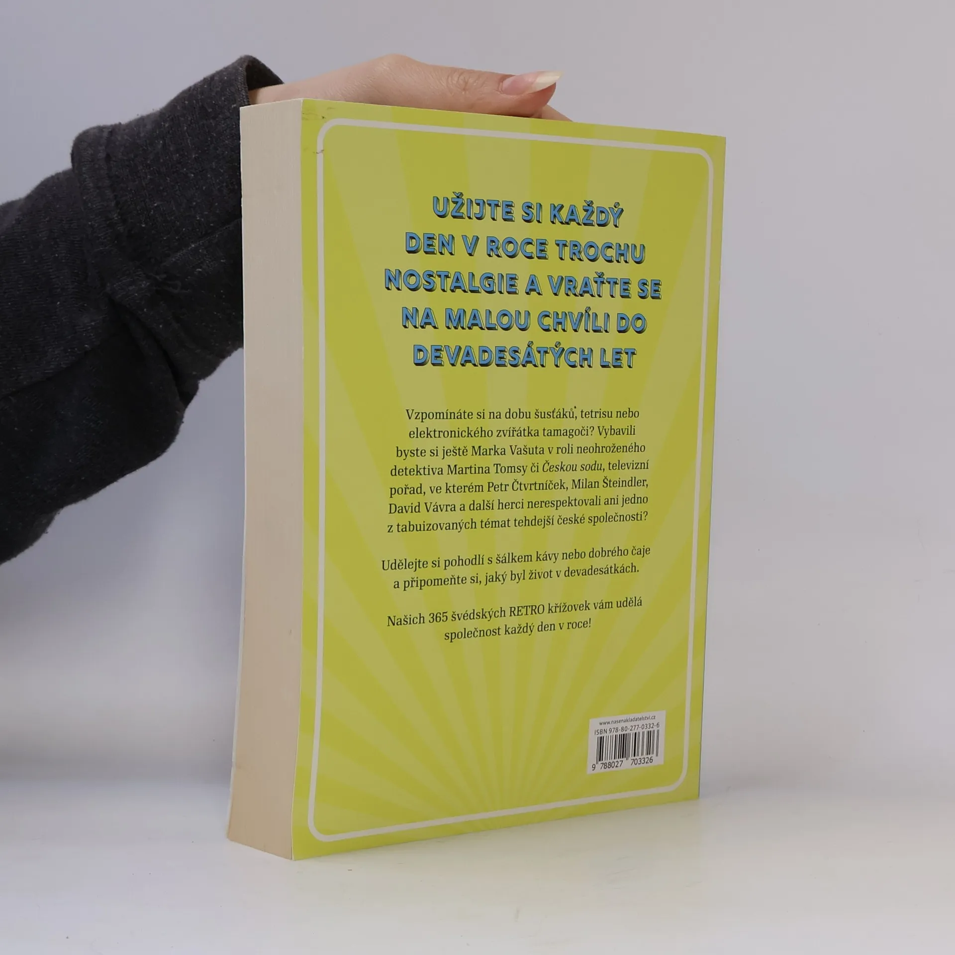 Užijte si každý den v roce trochu nostalgie a vraťte se na malou chvíli do devadesátých let. Vzpomínáte si na dobu šusťáků, tetrisu nebo elektronického zvířátka tamagoči? Vybavili byste si ještě Marka Vašuta v roli neohroženého detektiva Martina Tomsy či Českou sodu, televizní pořad, ve kterém Petr Čtvrtníček, Milan Šteindler, David Vávra a další herci nerespektovali ani jedno z tabuizovaných témat tehdejší české společnosti? Udělejte si pohodlí s šálkem kávy nebo dobrého čaje a připomeňte si, jaký byl život v devadesátkách. Našich 365 švédských RETRO křížovek vám udělá společnost každý den v roce!