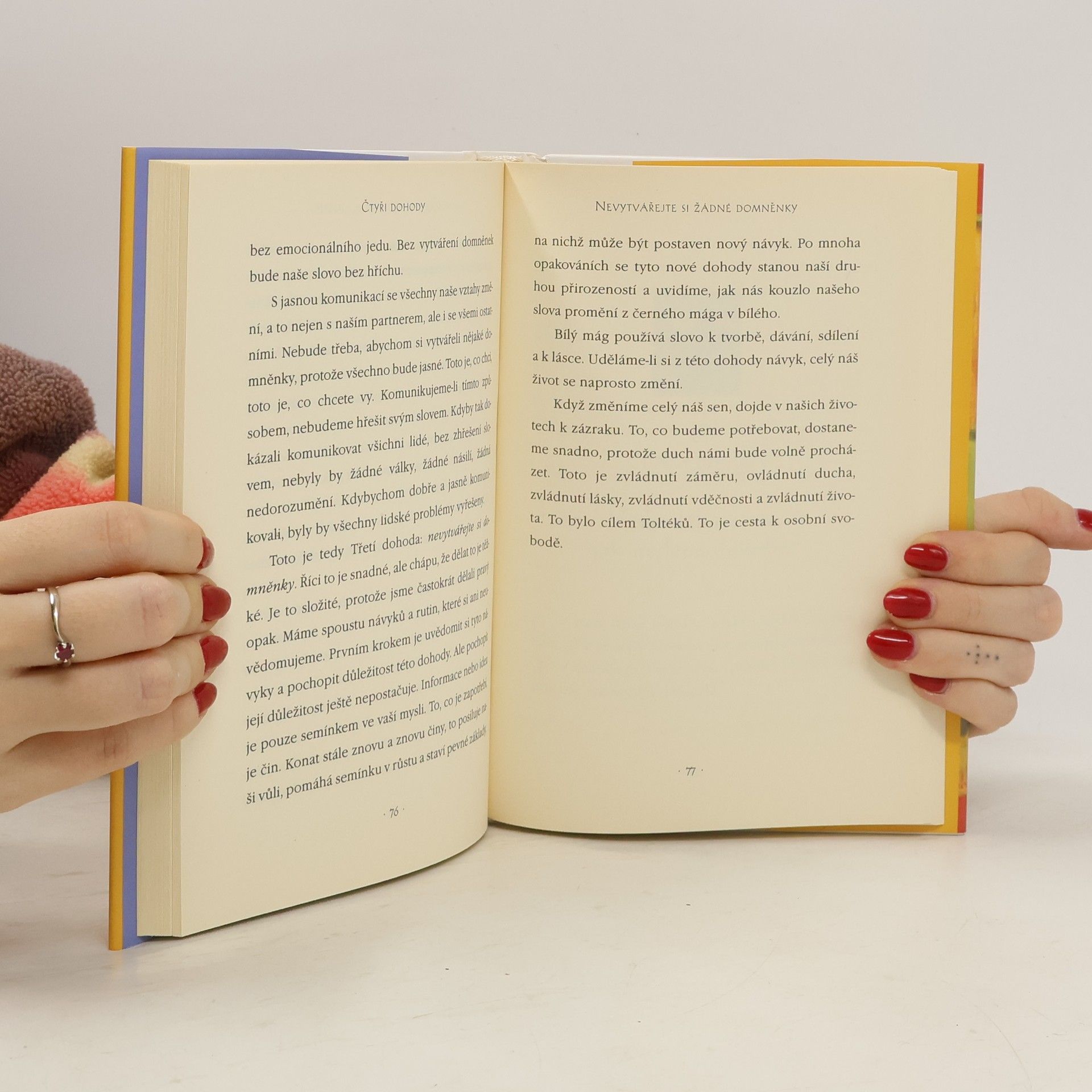 Praktický průvodce osobní svobodou. Ve Čtyřech dohodách odhaluje don Miguel Ruiz zdroj omezujících názorů, které nás připravují o radost a vedou k zbytečnému utrpení. Čtyři dohody, založené na staré toltécké moudrosti, nabízejí silný kód chování, který dokáže rychle proměnit náš život v nový prožitek svobody, opravdového štěstí a lásky.