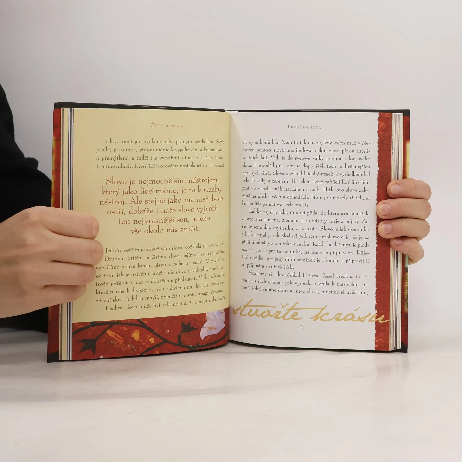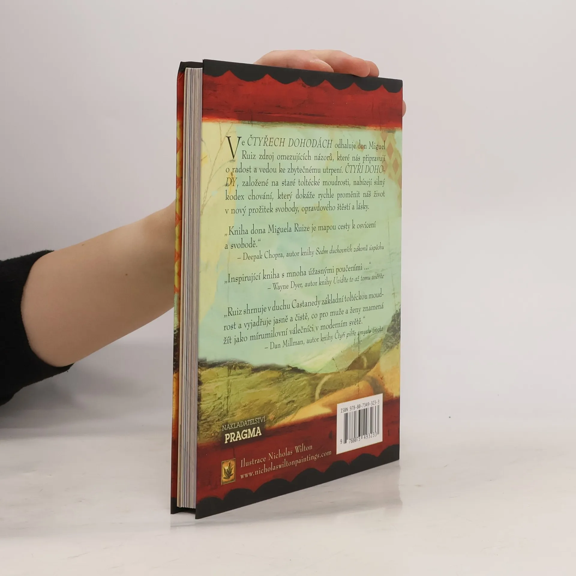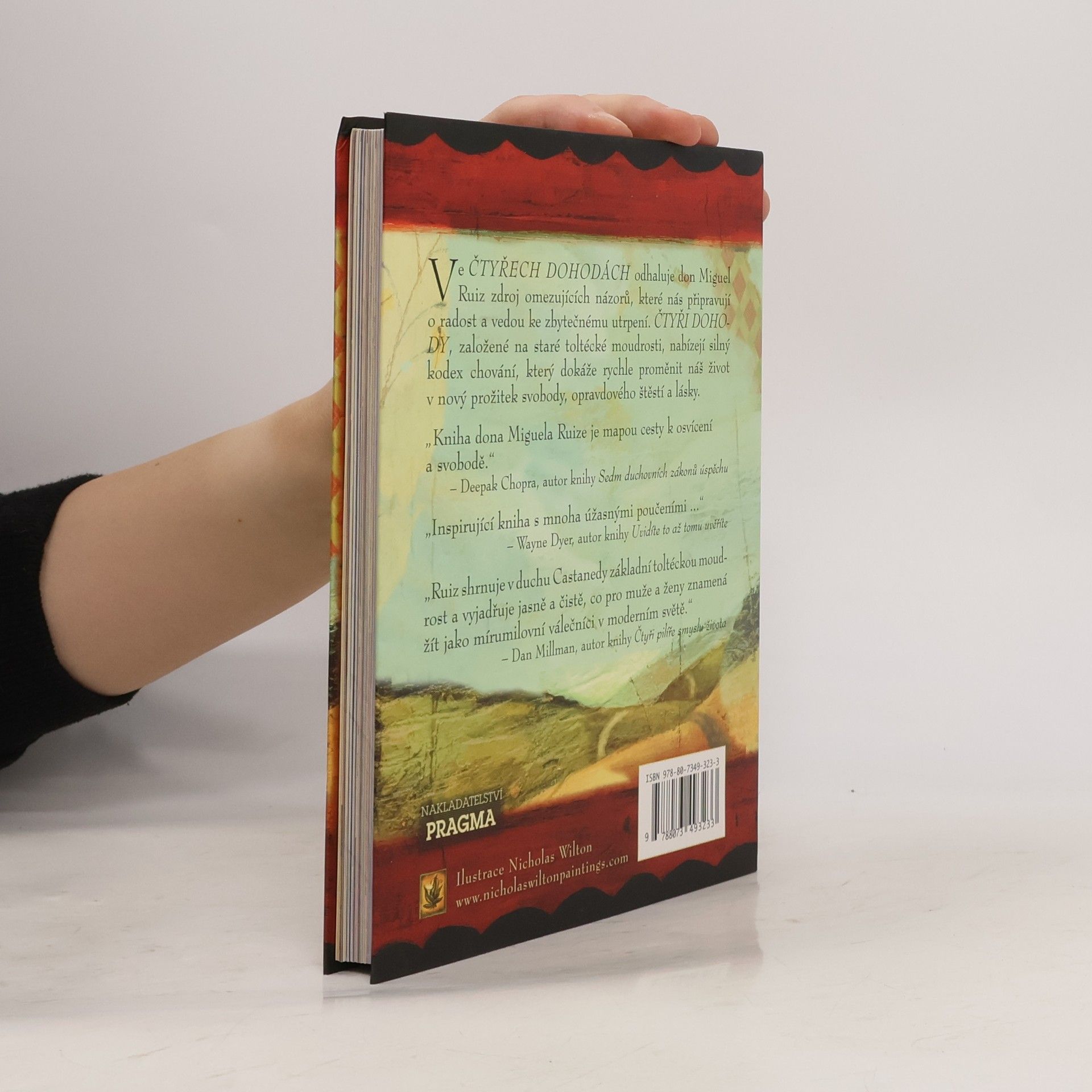 Ilustrovaná kniha. Vychází k 15. výročí prvního vydání. Ve Čtyřech dohodách odhaluje Don Miguel Ruiz zdroj omezujících názorů, které nás připravují o radost a vedou ke zbytečnému utrpení. Čtyři dohody, založené na staré toltécké moudrosti, nabízejí silný kód chování, který dokáže rychle proměnit náš život v nový prožitek svobody, opravdového štěstí a lásky. Ruiz shrnuje v duchu Castanedy základní toltéckou moudrost a vyjadřuje jasně a čistě, co pro muže a ženy znamená žít jako mírumilovní válečníci v moderním světě. V toltécké tradici vede naguál člověka k osobní svobodě. Don Miguel Ruiz je naguál z rodu Rytířů orla a věnuje se předávání svých znalostí učení starých Toltéků.