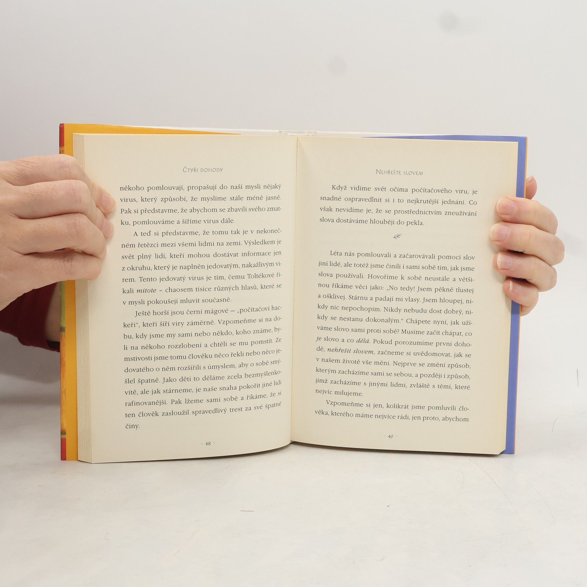 Praktický průvodce osobní svobodou. Ve Čtyřech dohodách odhaluje don Miguel Ruiz zdroj omezujících názorů, které nás připravují o radost a vedou k zbytečnému utrpení. Čtyři dohody, založené na staré toltécké moudrosti, nabízejí silný kód chování, který dokáže rychle proměnit náš život v nový prožitek svobody, opravdového štěstí a lásky.