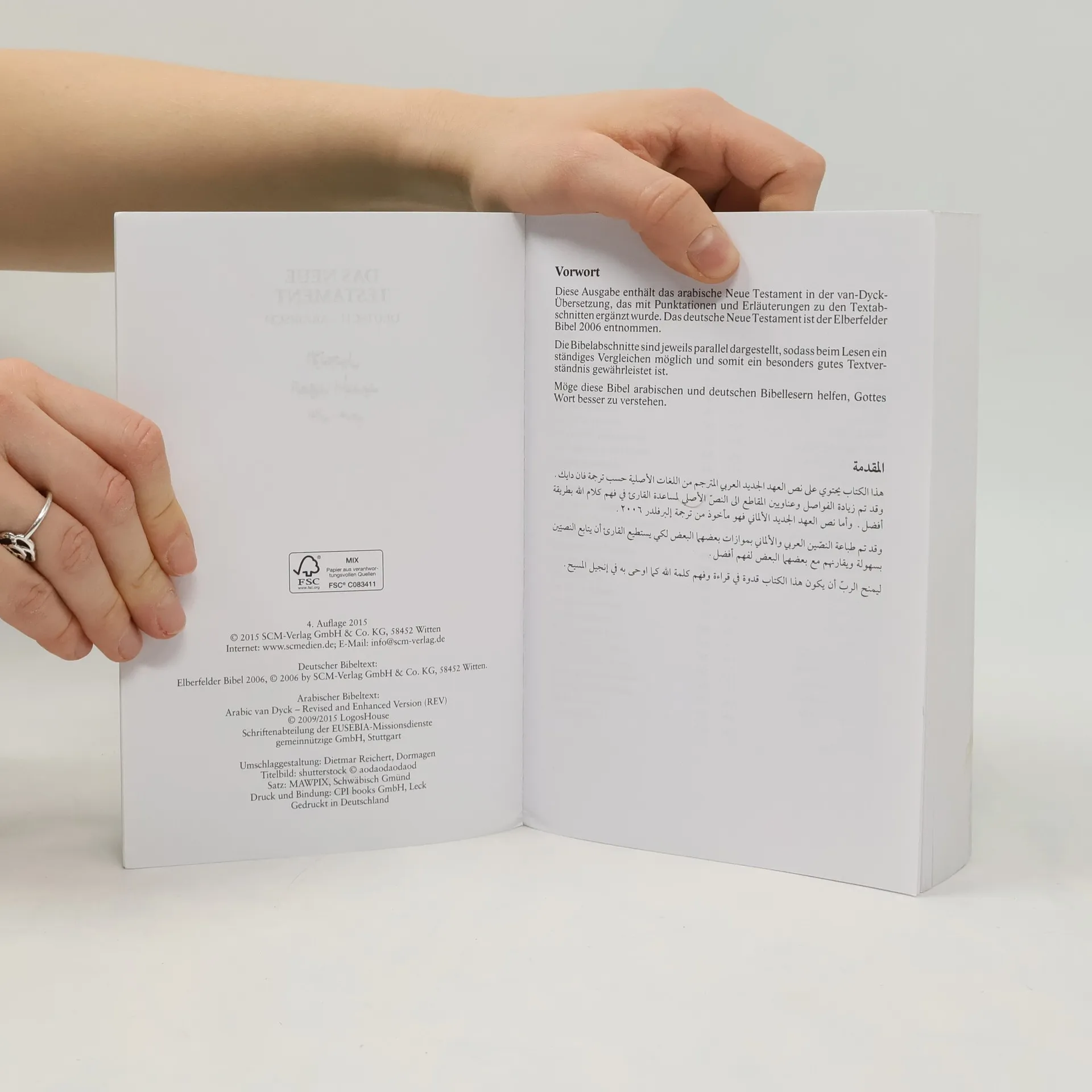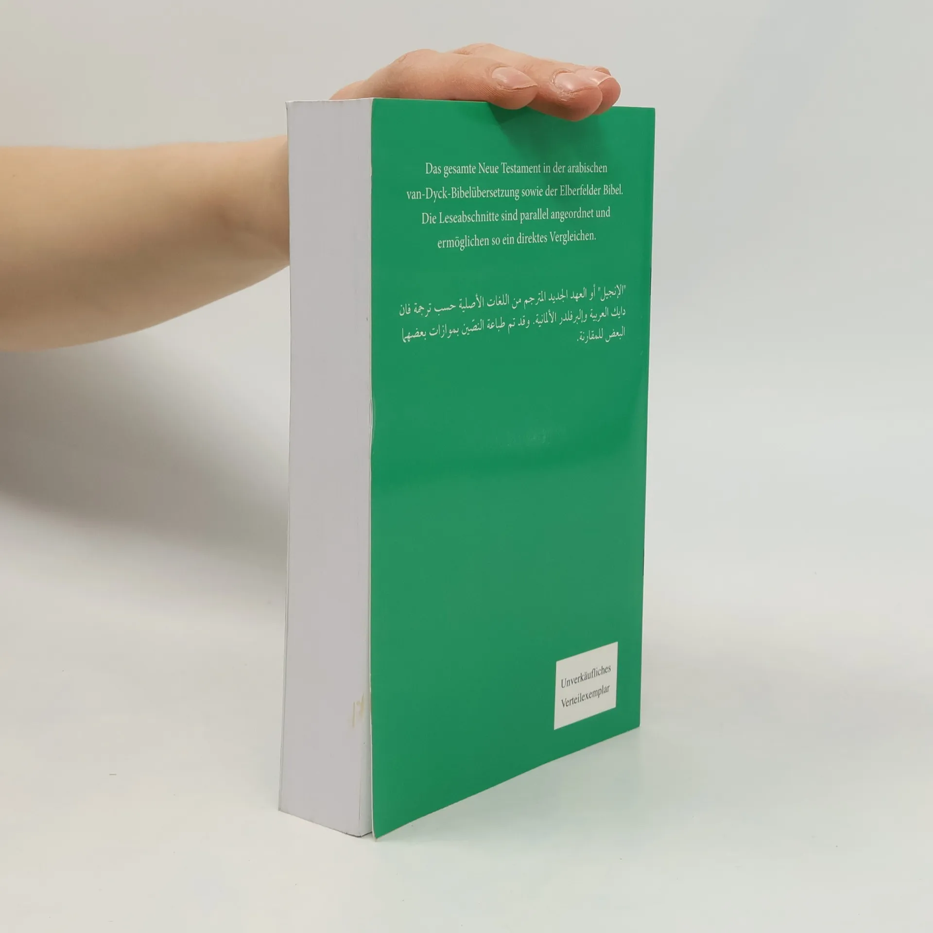 Diese Ausgabe des Neuen Testaments enthält den deutschen Bibeltext (in der grundtextnahen Elberfelder Übersetzung) und den entsprechenden Text in arabischer Sprache (nach der van-Dyck-Übersetzung). Der Text steht Vers für Vers nebeneinander. Diese günstige Sonderausgabe ist ideal zum Weitergeben bei diversen Aktionen, Veranstaltungen oder Besuchen.