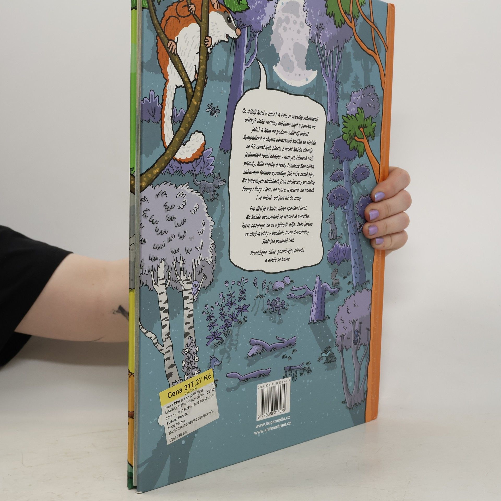 Sympatická a chytrá obrázková knížka se skládá ze 42 celistvých ploch, z nichž každá sleduje jednotlivá roční období v různých částech naší přírody. Milé kresby Tomasze Samojlika zábavnou formou vysvětlují, jak naše země žije. Na barevných stránkách jsou zachyceny proměny fauny i flóry v lese, na louce, u jezera, na horách i ve městě, od jara až do zimy. Na své si mohou přijít jak děti, tak i dospělí, kteří jim v louskání knížky budou pomáhat.
