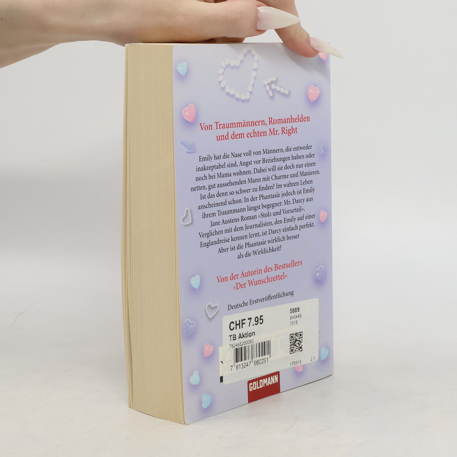 Ein Roman über Traummänner, Romanhelden und den echten Mr. RightEmily hat die Nase voll von Männern, die entweder inakzeptabel sind, Angst vor Beziehungen haben oder noch bei Mama wohnen. Dabei will sie doch nur einen netten, gut aussehenden Mann mit Charme und Manieren. Ist das denn so schwer zu finden? Im wahren Leben anscheinend schon. In der Phantasie jedoch hat Emily ihren Traummann längst gefunden: Mr. Darcy aus Jane Austens Roman „Stolz und Vorurteil“. Verglichen mit dem Journalisten, den Emily auf einer Englandreise kennen lernt, ist Darcy einfach perfekt. Aber ist die Phantasie wirklich besser als die Wirklichkeit? Herrlich komisch und voller Gefühl: eine zauberhafte romantische Komödie!