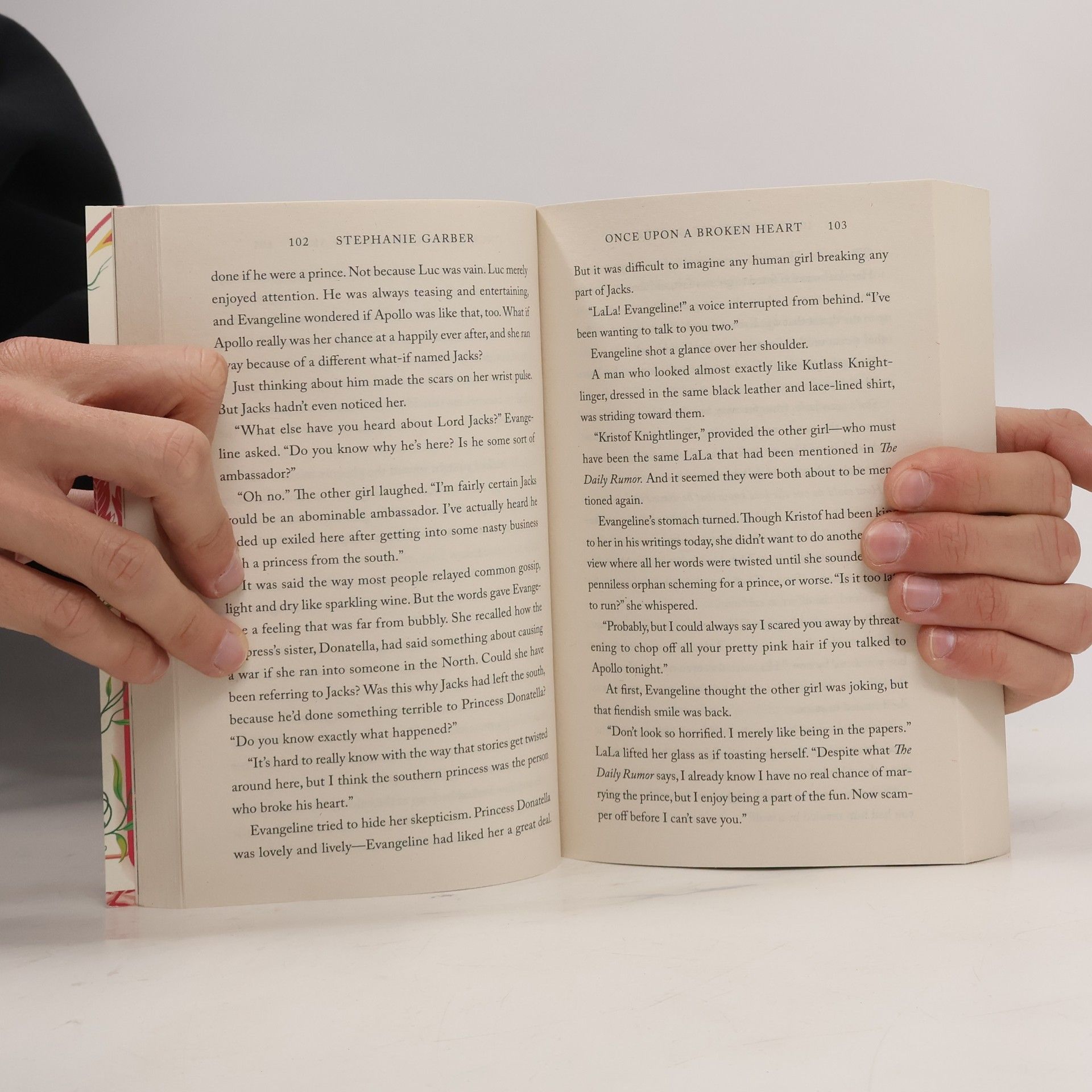 ONCE UPON A BROKEN HEART marks the launch of a new series from Stephanie Garber about love, curses, and the lengths that people will go to for happily ever after For as long as she can remember, Evangeline Fox has believed in true love and happy endings . . . until she learns that the love of her life will marry another. Desperate to stop the wedding and to heal her wounded heart, Evangeline strikes a deal with the charismatic, but wicked, Prince of Hearts. In exchange for his help, he asks for three kisses, to be given at the time and place of his choosing. But after Evangeline’s first promised kiss, she learns that bargaining with an immortal is a dangerous game — and that the Prince of Hearts wants far more from her than she’d pledged. He has plans for Evangeline, plans that will either end in the greatest happily ever after, or the most exquisite tragedy.