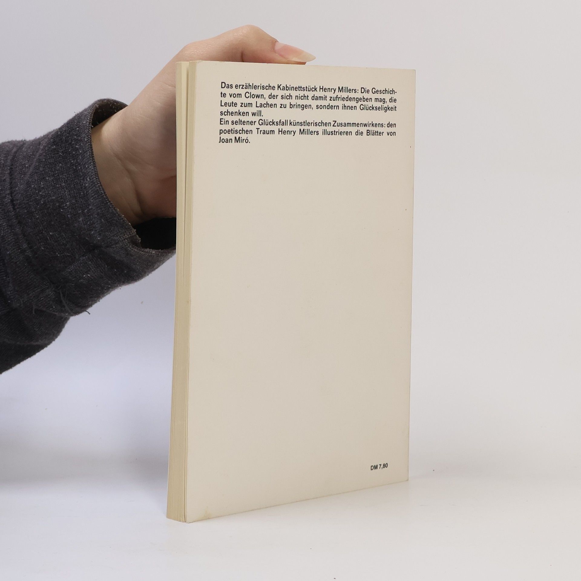 Das erzählerische Kabinettstück Henry Millers: Die Geschichte vom Clown, der sich nicht damit zufriedengeben mag, die Leute zum Lachen zu bringen, sondern ihnen Glückseligkeit schenken will. Ein seltener Glücksfall künstlerischen Zusammenwirkens: den poetischen Traum Henry Millers illustrieren die Blätter von Joan Miró.