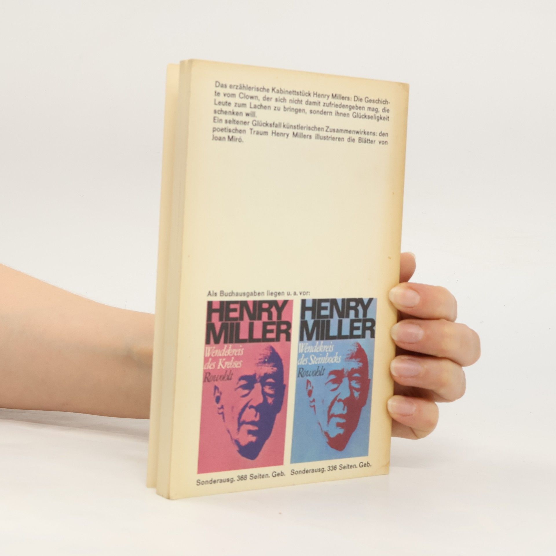 Das erzählerische Kabinettstück Henry Millers: Die Geschichte vom Clown, der sich nicht damit zufriedengeben mag, die Leute zum Lachen zu bringen, sondern ihnen Glückseligkeit schenken will. Ein seltener Glücksfall künstlerischen Zusammenwirkens: den poetischen Traum Henry Millers illustrieren die Blätter von Joan Miró.