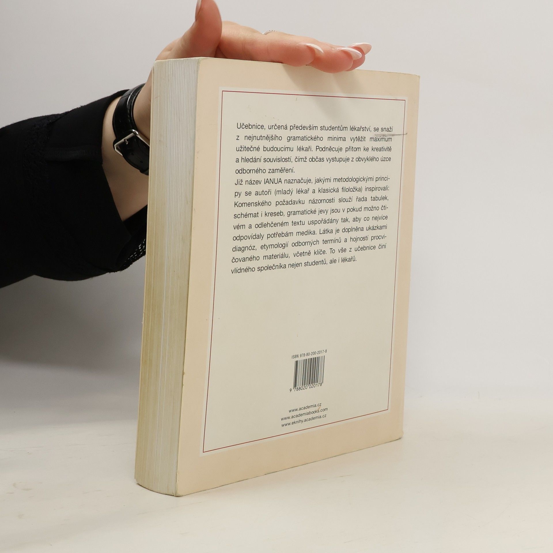 Učebnice, určená především studentům lékařství, se snaží z nejnutnějšího gramatického minima vytěžit maximum užitečné budoucímu lékaři. Podněcuje přitom ke kreativitě a hledání souvislostí, čímž občas vystupuje z obvyklého úzce odborného zaměření.
