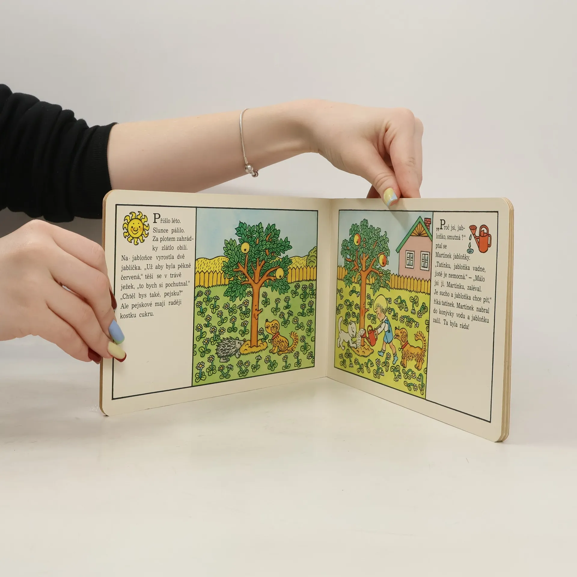 Obrázkové leporelo pro nejmenší děti o Martínkovi, který s maminkou a tatínkem pečuje o jabloňku.