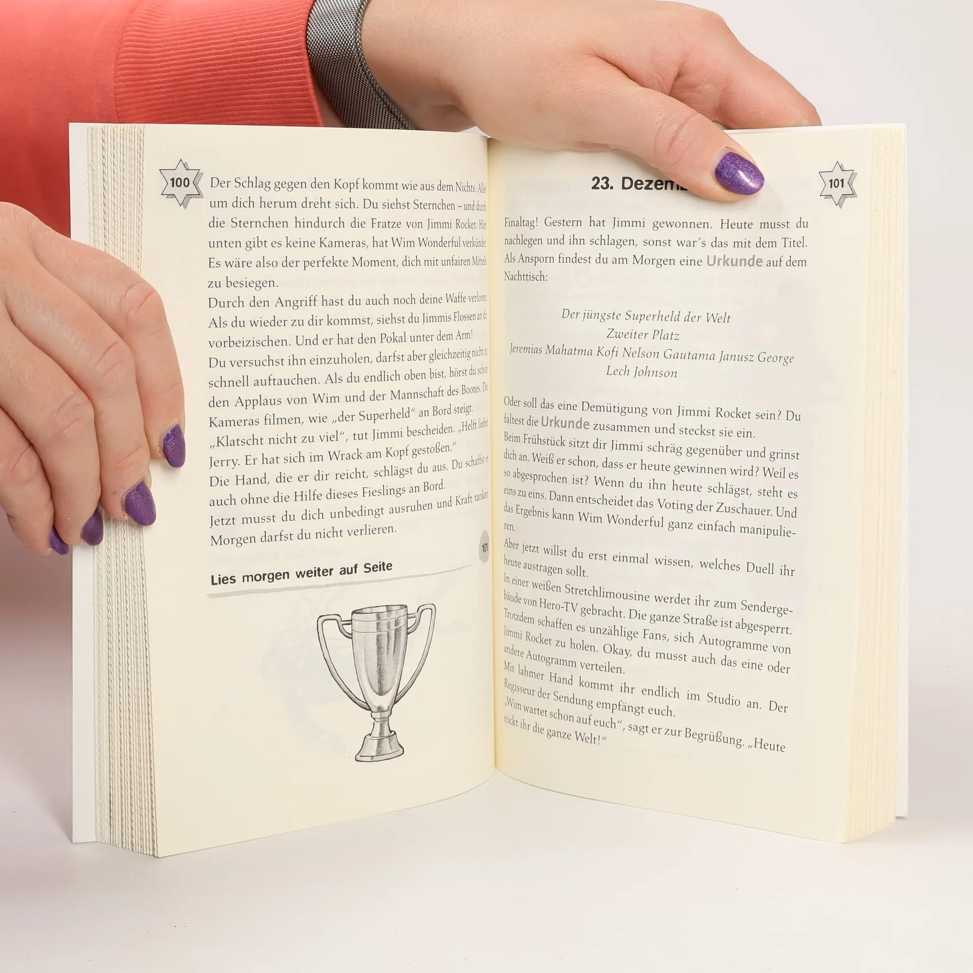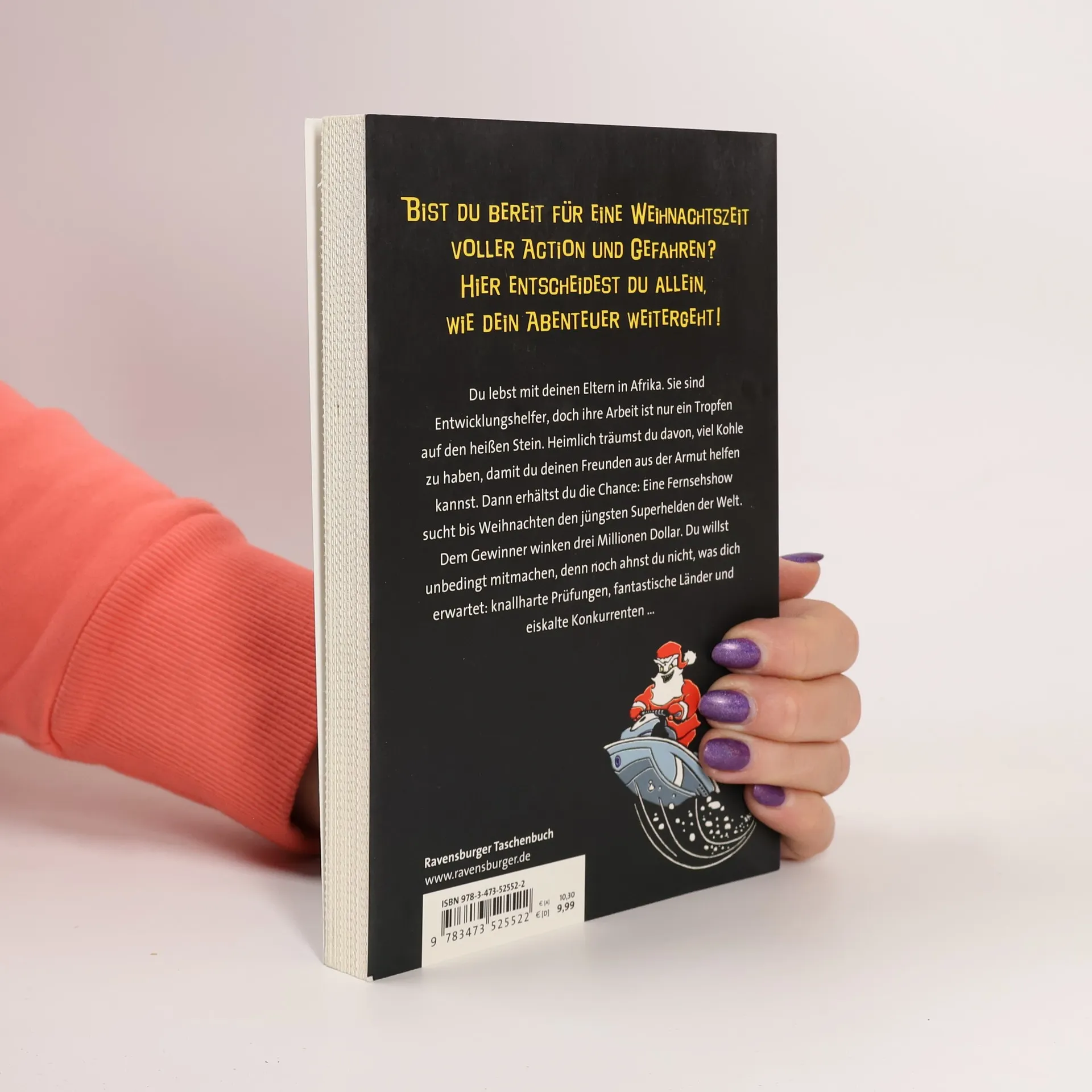 Deine Eltern sind Entwicklungshelfer in Ghana. Gern würdest du sie bei ihrer Arbeit unterstützen. Da erfährst du, dass es in den USA vom 1. bis 24. Dezember einen großen Wettbewerb gibt. Gesucht wird der jüngste Superheld der Welt. Dem Gewinner winken drei Millionen Dollar. Du machst mit, denn mit dem Preisgeld könnten deine Freunde in Ghana weiter auf die Schule gehen. Die einzelnen Challenges führen dich an sagenhafte Schauplätze, aber deine Konkurrenz ist verdammt gut. Hast du trotzdem eine Chance?