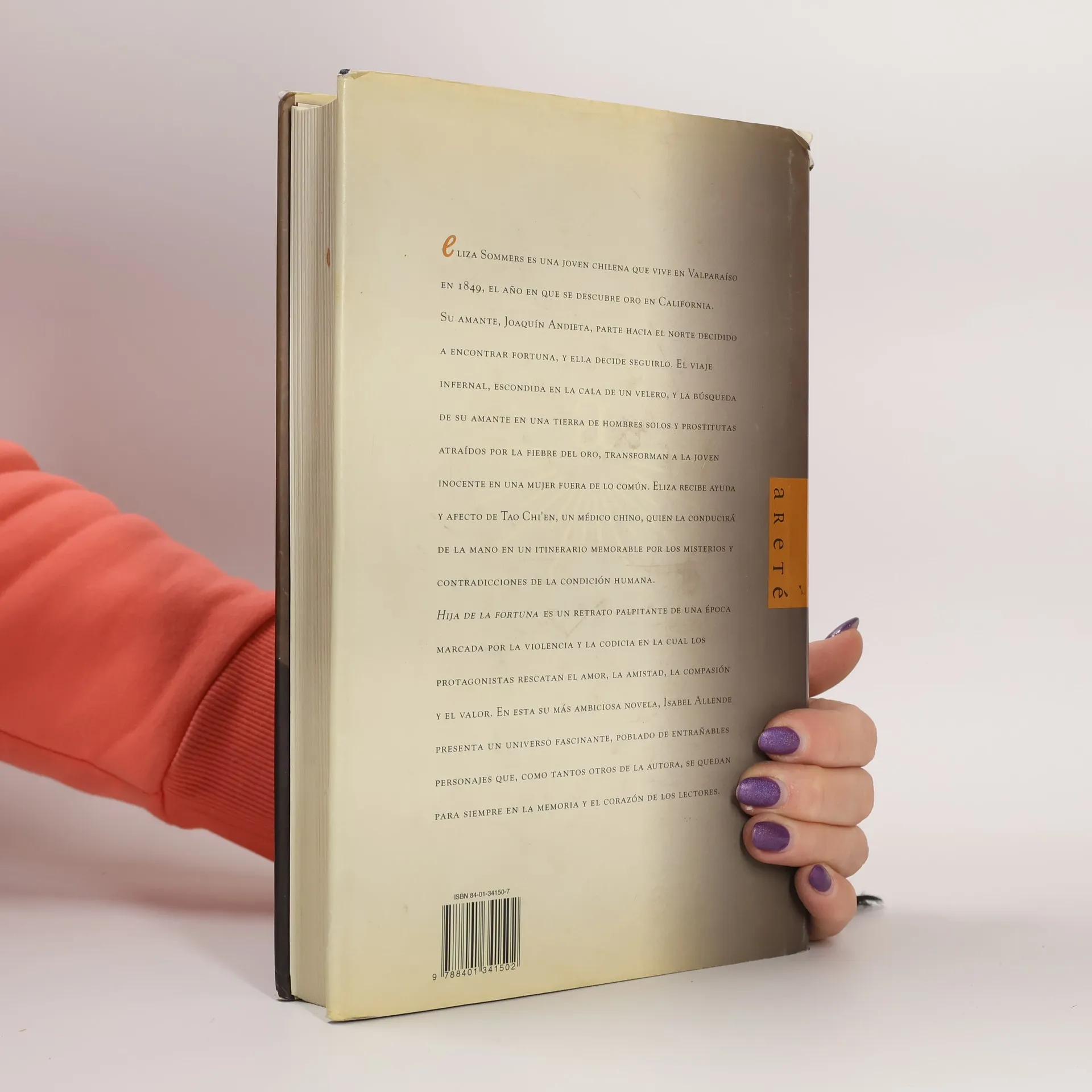 Eliza Sommers es una joven chilena que vive en Valparaíso en 1849, el año en que se descubre oro en California. Su amante, Joaquín Andieta, parte hacia el norte decidido a encontrar fortuna, y ella decide seguirlo. El viaje infernal, escondida en la cala de un velero, y la búsqueda de su amante en una tierra de hombres solos y prostitutas atraídos por la fiebre del oro, transforman a la joven inocente en una mujer fuera de lo común. Eliza recibe ayuda y afecto de Tao Chi’en, un médico chino, quien la conducirá de la mano en un itinerario memorable por los misterios y contradicciones de la condición humana. Hija de la fortuna es un retrato palpitante de una época marcada por la violencia y la codicia, en la cual los protagonistas rescatan el amor, la amistad, la compasión y el valor. En esta su más ambiciosa novela, Isabel Allende presenta un universo fascinante, poblado de entrañables personajes que, como tantos otros de la autora, se quedan para siempre en la memoria y el corazón de los lectores.