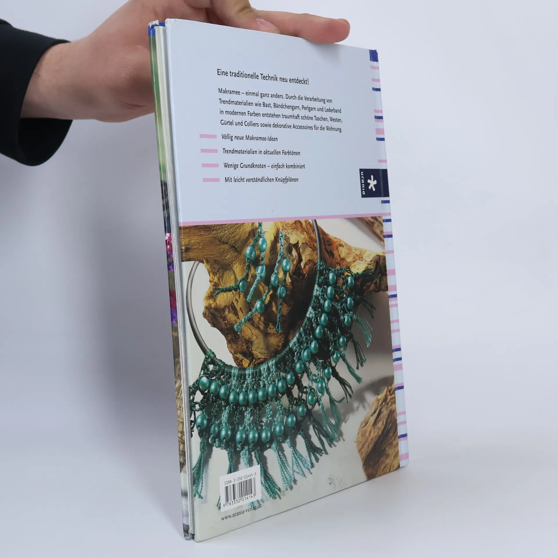 Makramee - einmal ganz anders. Durch Trendmaterial wie Bast, Lederband, Perlgarn entstehen Taschen, Westen, Gürtel und Colliers ... Leicht verständliche Knüpfpläne