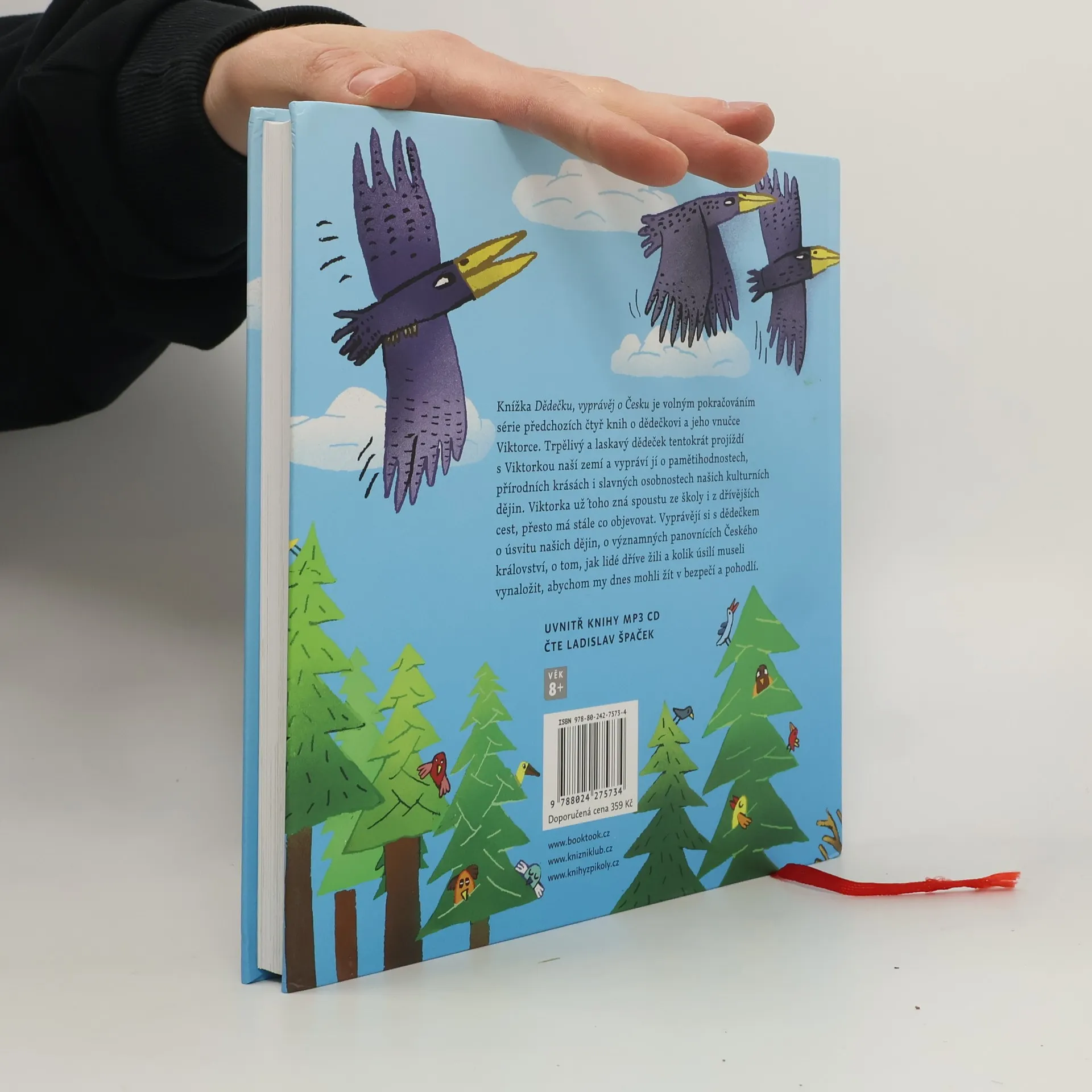 Knížka Dědečku, vyprávěj o Česku je volným pokračováním série předchozích čtyř knih o dědečkovi a jeho vnučce Viktorce. Trpělivý a laskavý dědeček tentokrát projíždí s Viktorkou naší zemí a vypráví jí o pamětihodnostech, přírodních krásách i slavných osobnostech našich kulturních dějin. Viktorka už zná leccos ze školy i z dřívějších cest, přesto má stále co objevovat. Vyprávějí si s dědečkem o úsvitu našich dějin, o významných panovnících Českého království, o tom, jak lidé dříve žili a kolik úsilí museli vynaložit, abychom my dnes mohli žít v bezpečí a pohodlí.
