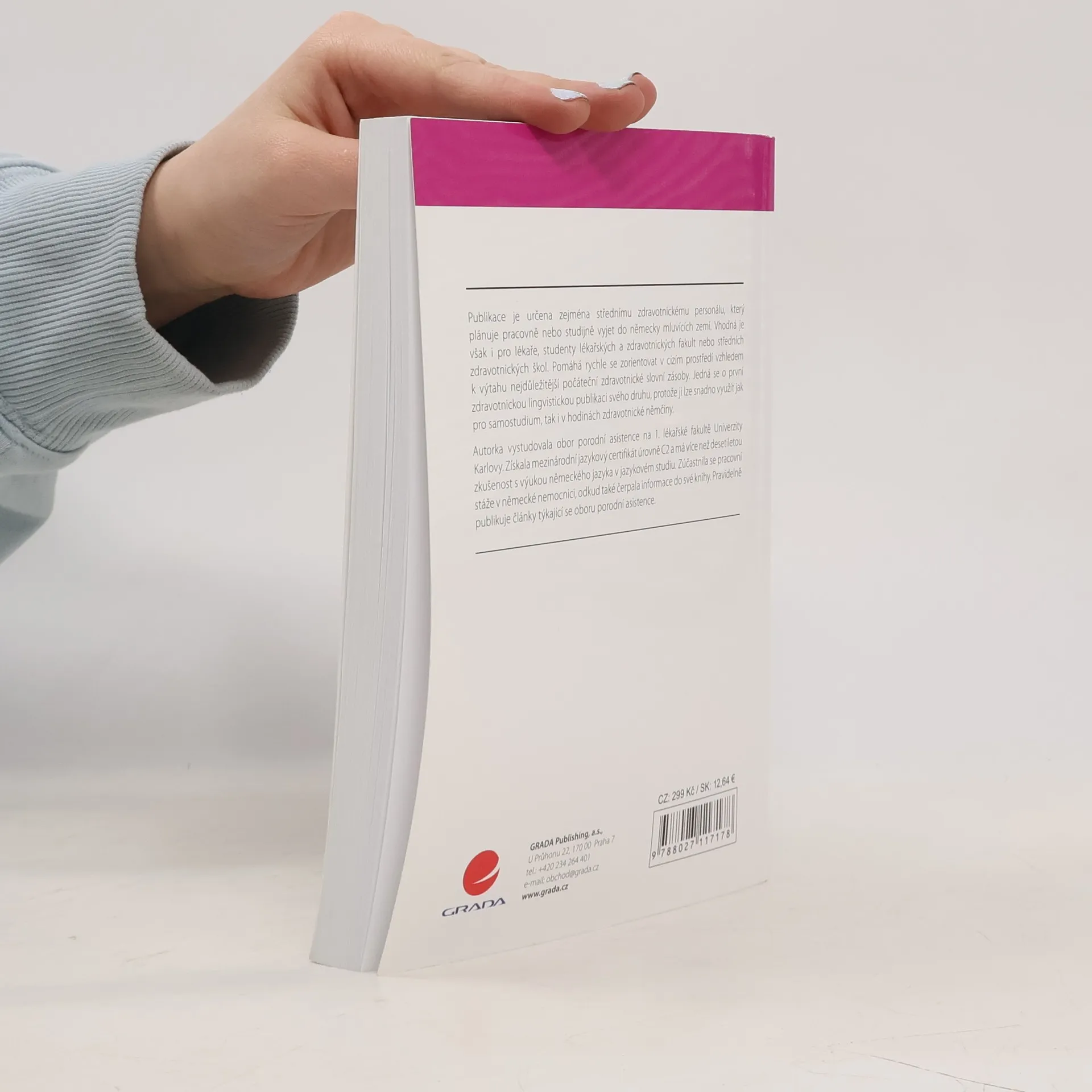 Publikace je určena zejména střednímu zdravotnickému personálu, který plánuje pracovně nebo studijně vyjet do německy mluvících zemí. Vhodná je však i pro lékaře, studenty lékařských a zdravotnických fakult nebo středních zdravotnických škol. Pomáhá rychle se zorientovat v cizím prostředí vzhledem k výtahu nejdůležitější počáteční zdravotnické slovní zásoby. Publikace je uživatelsky přívětivá vzhledem k jasně dané struktuře a logice posloupnosti tematiky. Autorka vystudovala obor porodní asistence na 1. lékařské fakultě Univerzity Karlovy. Získala mezinárodní jazykový certifikát úrovně C2 a má více než desetiletou zkušenost s výukou německého jazyka v jazykovém studiu. Zúčastnila se pracovní stáže v německé nemocnici, odkud také čerpala informace do své knihy. Pravidelně publikuje články týkající se oboru porodní asistence.