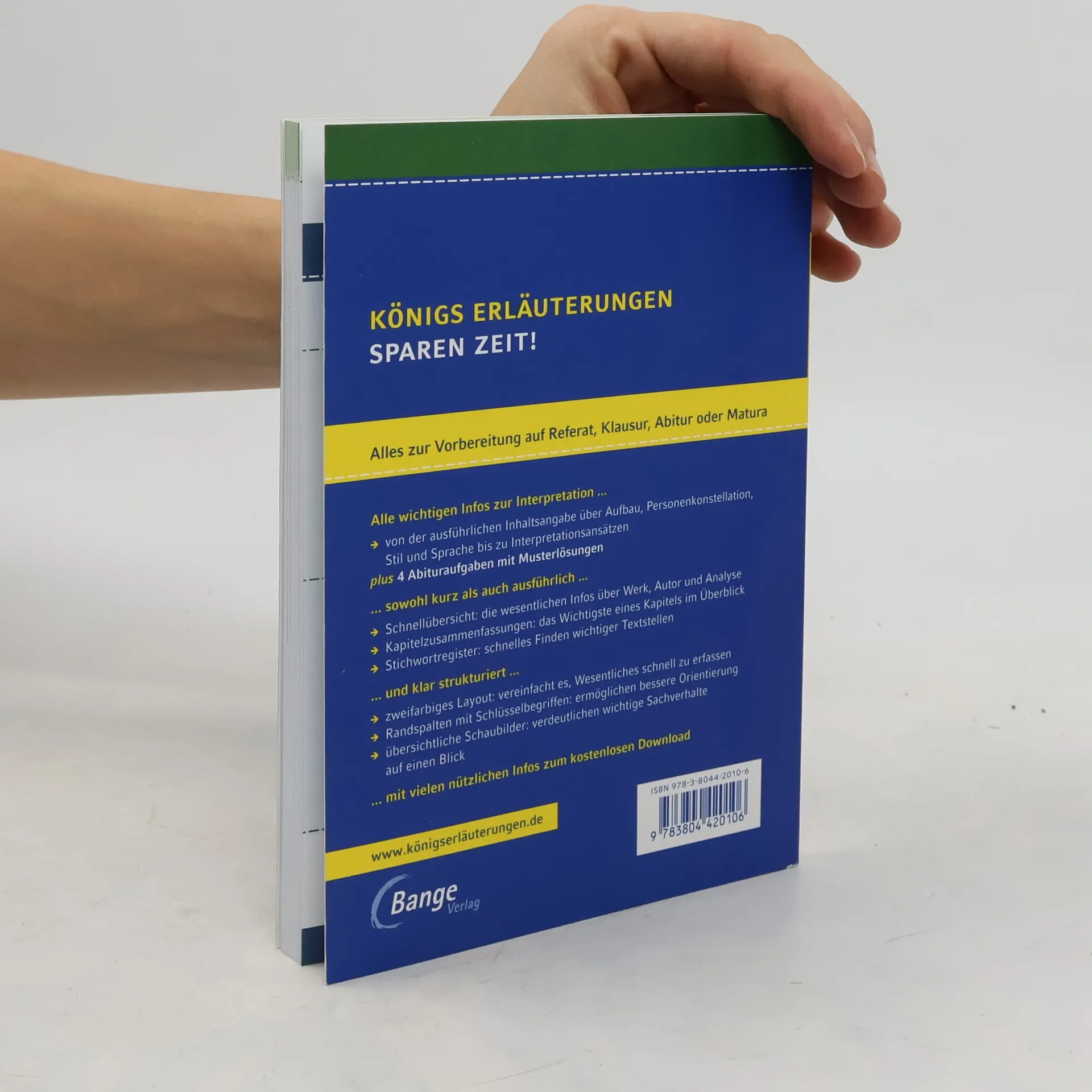 Königs Erläuterungen – Textanalyse und Interpretation mit ausführlicher Inhaltsangabe und Abituraufgaben In einem Band bieten dir die neuen Königs Erläuterungen alles, was du zur Vorbereitung auf Referat, Klausur, Abitur oder Matura benötigst. Das spart Zeit bei der Vorbereitung! Alle wichtigen Infos zur Interpretation... - von der ausführlichen Inhaltsangabe über Aufbau, Personenkonstellation, Stil und Sprache bis zu Interpretationsansätzen - plus 4 Abituraufgaben mit Musterlösungen und 2 weitere zum kostenlosen Download ... sowohl kurz als auch ausführlich ... - Die Schnellübersicht fasst alle wesentlichen Infos zu Werk und Autor und Analyse zusammen. - Die Kapitelzusammenfassungen zeigen dir das Wichtigste eines Kapitels im Überblick – ideal auch zum Wiederholen. - Das Stichwortregister ermöglicht dir schnelles Finden wichtiger Textstellen. ... und klar strukturiert ... - Ein zweifarbiges Layout hilft dir Wesentliches einfacher und schneller zu erfassen. - Die Randspalte mit Schlüsselbegriffen ermöglichen dir eine bessere Orientierung. - Klar strukturierte Schaubilder verdeutlichen dir wichtige Sachverhalte auf einen Blick. ... mit vielen zusätzlichen Infos zum kostenlosen Download. Sprachen: Deutsch, Englisch