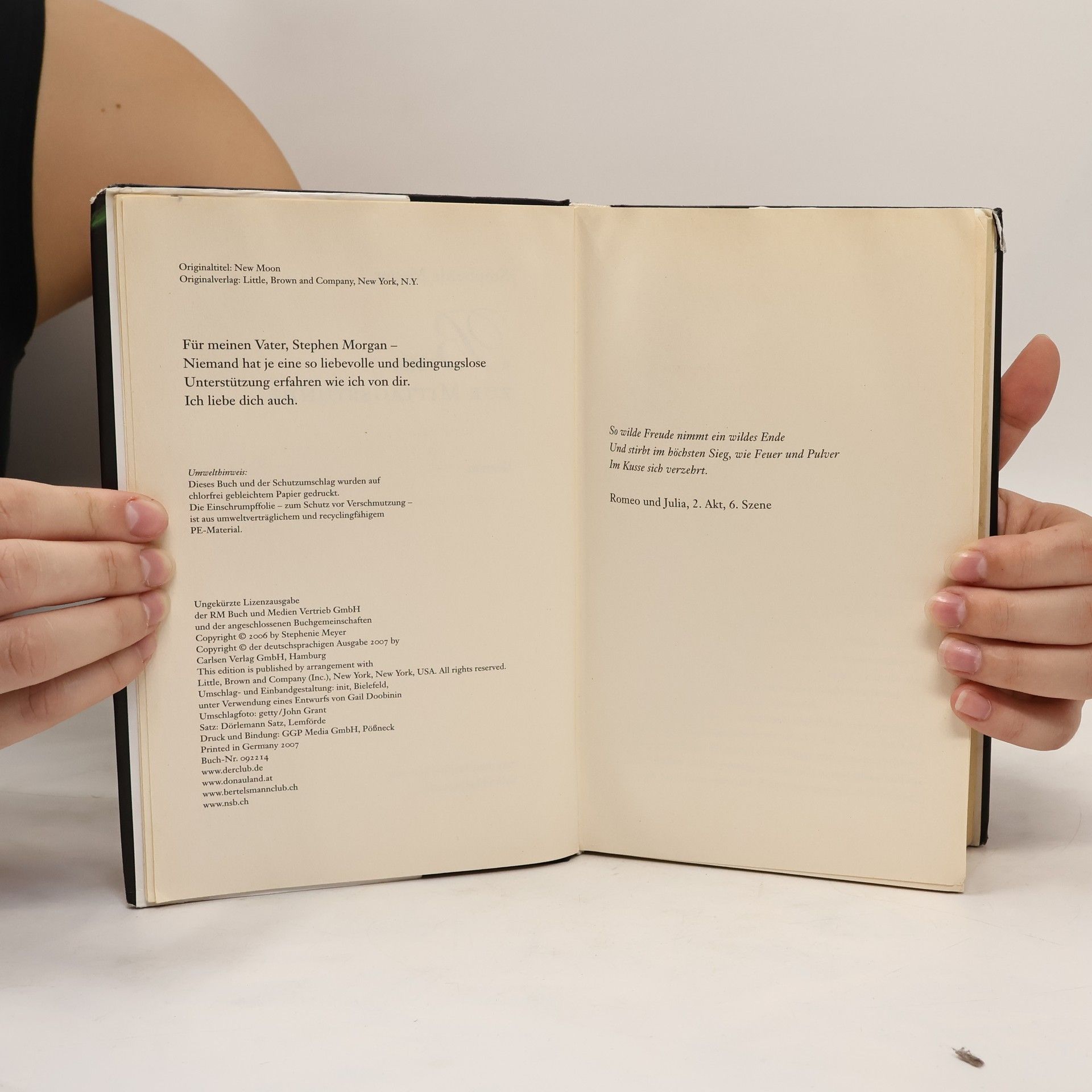 Für immer mit Edward zusammen zu sein - Bellas Traum scheint wahr geworden! Kurz nach ihrem 18. Geburtstag findet er jedoch ein jähes Ende, als ein kleiner, aber blutiger Zwischenfall ihr fast zum Verhängnis wird. Edward hat keine andere Wahl: Er muss sie verlassen. Für immer. Bella zerbricht beinahe daran, einzig die Freundschaft zu Jacob gibt ihr die Kraft weiterzuleben. Da erfährt Bella, dass Edward in höchster Gefahr schwebt. Und sein Schicksal liegt in ihren Händen. Sie muss zu ihm, rechtzeitig, bis zur Mittagsstunde ...