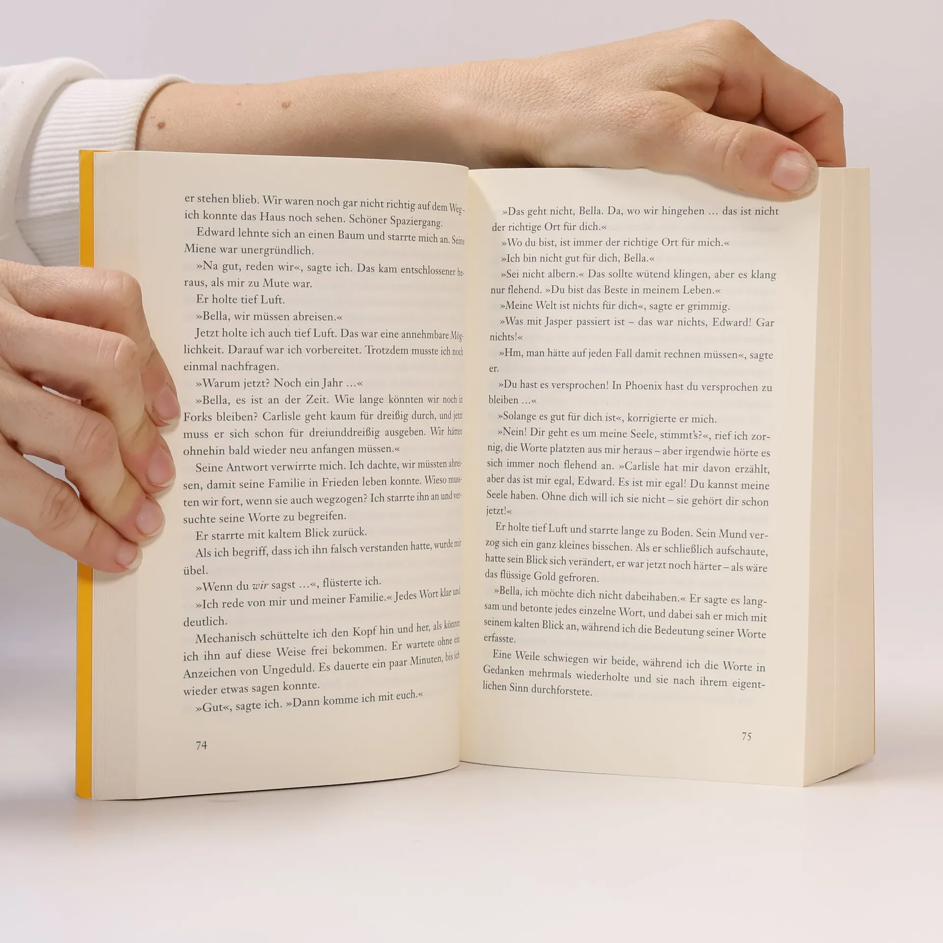 Für immer mit Edward zusammen zu sein - Bellas Traum scheint wahr geworden! Kurz nach ihrem 18. Geburtstag findet er jedoch ein jähes Ende, als ein kleiner, aber blutiger Zwischenfall ihr fast zum Verhängnis wird. Edward hat keine andere Wahl: Er muss sie verlassen. Für immer. Bella zerbricht beinahe daran, einzig die Freundschaft zu Jacob gibt ihr die Kraft weiterzuleben. Da erfährt Bella, dass Edward in höchster Gefahr schwebt. Und sein Schicksal liegt in ihren Händen. Sie muss zu ihm, rechtzeitig, bis zur Mittagsstunde ...