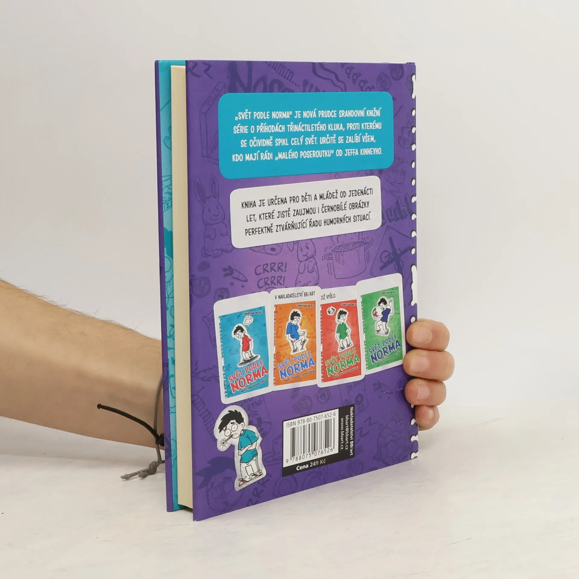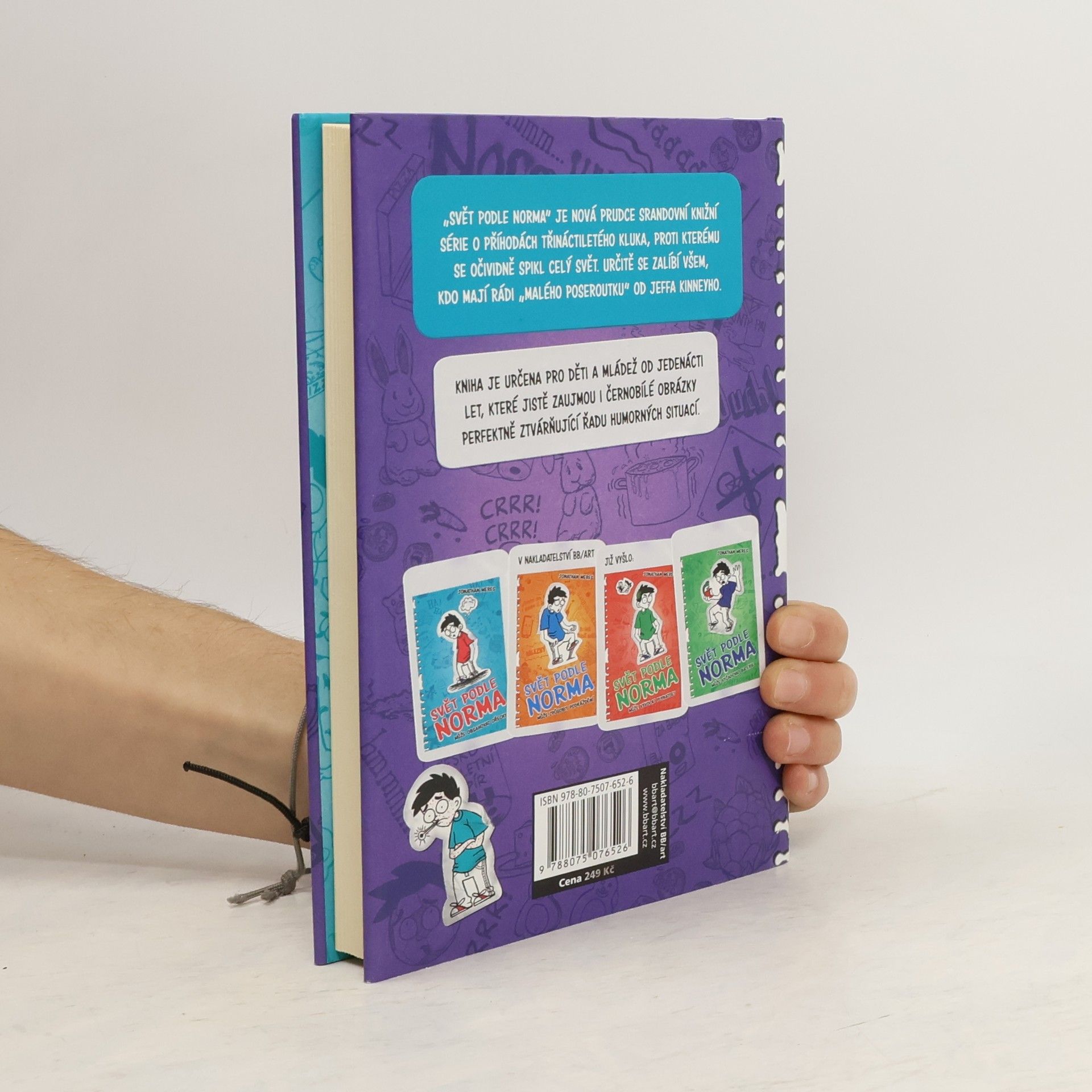 Když se ráno probudíte a zjistíte, že máte v uchu kus cukrové kukuřice, hned je vám jasné, že před vámi je další den blbec. Ne že by to Normovi nebylo jasné i bez kukuřice, protože poslední dobou si u něj takové dny podávají dveře. Takže není nijak zvlášť překvapivé, že sotva vylezete z pelechu, tak si nejdřív málem vymknete ruku v zápěstí a krátce nato navíc zjistíte, že váš nejlepší kamarád se nejspíš chce místo vás kamarádit s tím nejpoblbanějším mamlasem v širokém okolí. A teď zásadní otázka: je možné, že smůla je nakažlivá? SVĚT PODLE NORMA je prudce srandovní knižní série o příhodách třináctiletého kluka, proti kterému se očividně spikl celý svět. Určitě se zalíbí všem, kdo mají rádi „malého poseroutku“ od Jeffa Kinneyho.