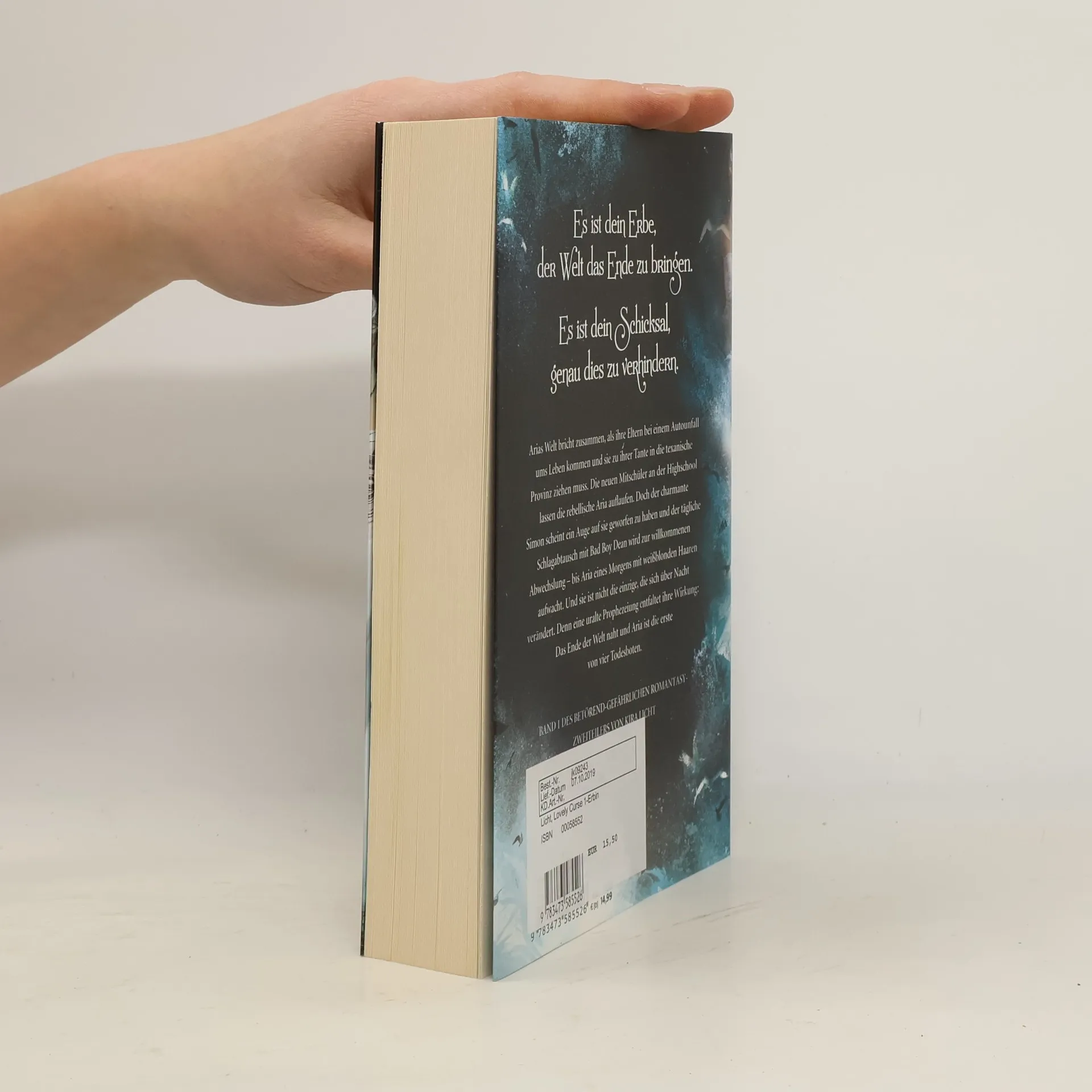 Es ist dein Erbe, der Welt das Ende zu bringen.Es ist dein Schicksal, genau dies zu verhindern.Arias Welt bricht zusammen, als ihre Eltern bei einem Autounfall ums Leben kommen und sie zu ihrer Tante in die texanische Provinz ziehen muss. Die neuen Mitschüler an der Highschool lassen die rebellische Aria auflaufen. Doch der charmante Simon scheint ein Auge auf sie geworfen zu haben und der tägliche Schlagabtausch mit Bad Boy Dean wird zur willkommenen Abwechslung - bis Aria eines Morgens mit weißblonden Haaren aufwacht. Und sie ist nicht die einzige, die sich über Nacht verändert. Denn eine uralte Prophezeiung entfaltet ihre Wirkung: Das Ende der Welt naht und Aria ist die erste von vier Todesboten.