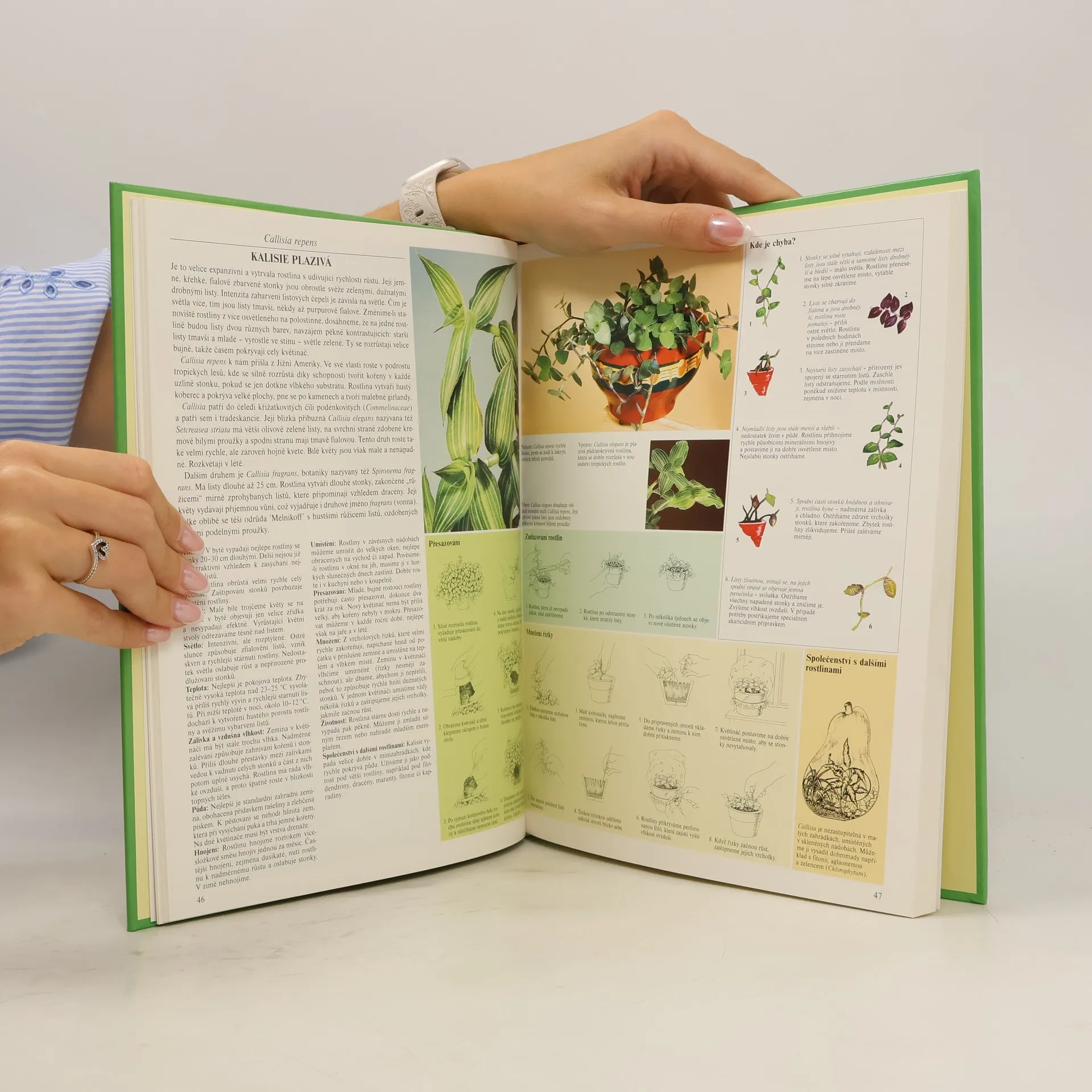 Informace o pěstování 87 méně známých pokojových rostlin s názornými kresbami a návody na množení, přesazování a ošetřování spolu s popisy a příčinami chybné péče a chorob jednotlivých druhů.