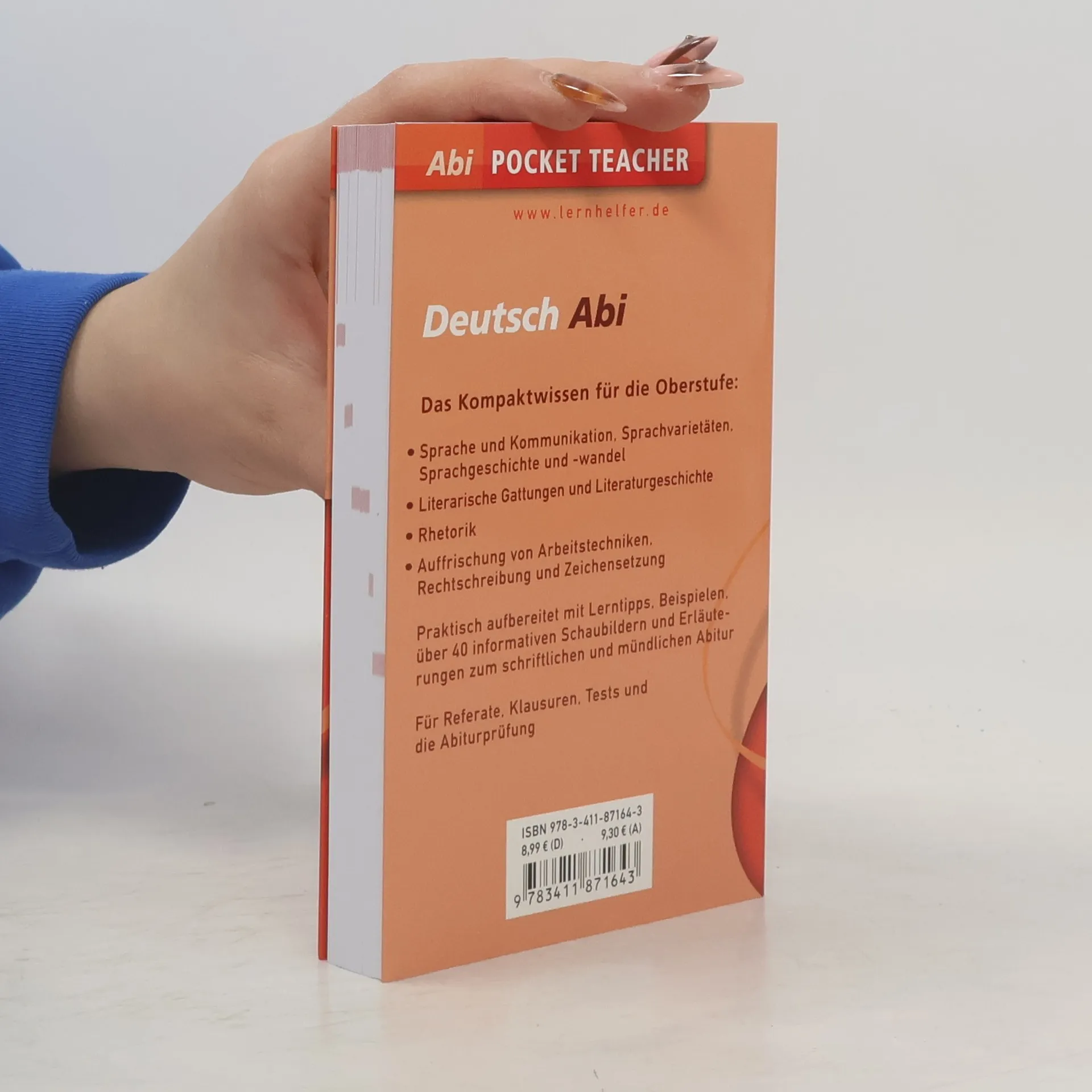 Die erfolgreichen "Pocket Teacher Abi" fassen alle lehrplanrelevanten Inhalte der Oberstufe kompakt und leicht verständlich zusammen. Der Band "Deutsch" behandelt alle Aspekte der deutschen Sprache und Literaturgeschichte, die wichtigsten Arbeitstechniken und Methoden zum Sprechen und Schreiben sowie Basiswissen zu Grammatik, Rechtschreibung und Zeichensetzung. "Pocket Teacher Abi" sind die idealen Begleiter im Pocket-Format für Schüler der Oberstufe und helfen zuverlässig bei der Vorbereitung auf Klausuren, Referate und das Abitur. Ob Grundkurs oder Leistungskurs - hier profitiert jeder!