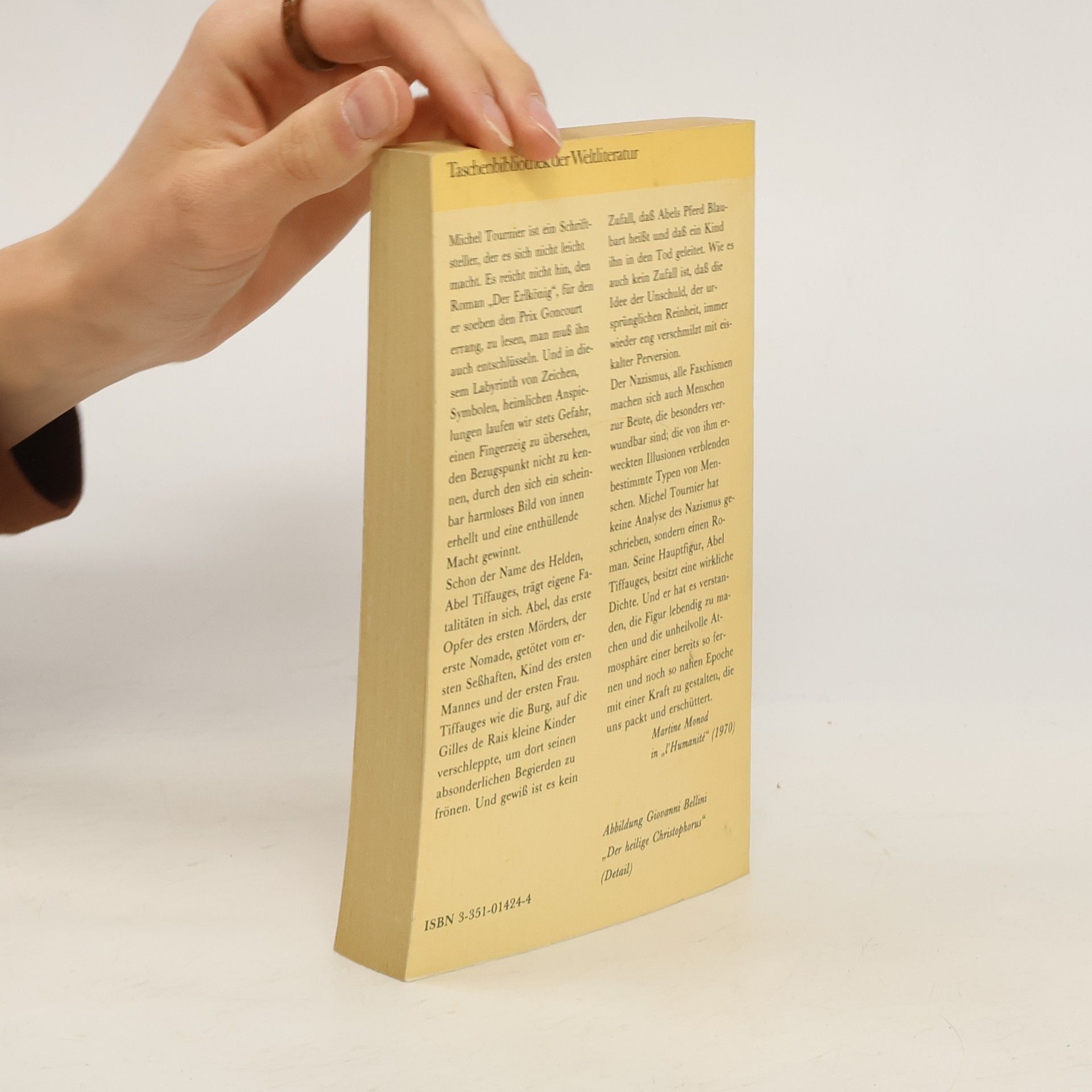 'Wir haben diesen Roman zum Buch des Monats gewählt', entschied seinerzeit die Darmstädter Jury, 'weil der Versuch eines Franzosen, deutsche Unheimlichkeit in einer phantastisch-realistischen Groteske seinen Landsleuten begreifbar zu machen, auch für deutsche Leser bedeutungsvoll ist.' Wohl nur ein Nicht-Deutscher konnte sich so (un-)befangen an die Nazi-Jahre machen und einen Titelhelden mit dem beziehungsreichen Namen Tiffauges vom Elsaß aus in deutsche Kriegsgefangenschaft schicken, von dort nach Ostpreußen, wo er in der Rominter Heide Tierpfleger von Gnaden des Reichsjägermeisters Göring und schließlich Faktotum in der Nationalpolitischen Erziehungsanstalt 'Kaltenborn' wird. Nebenbei: In keinem deutschsprachigen Nachkriegsbuch finden sich derart brillante und präzise Landschaftsbeschreibungen Ostpreußens wie im 'Erlkönig'.