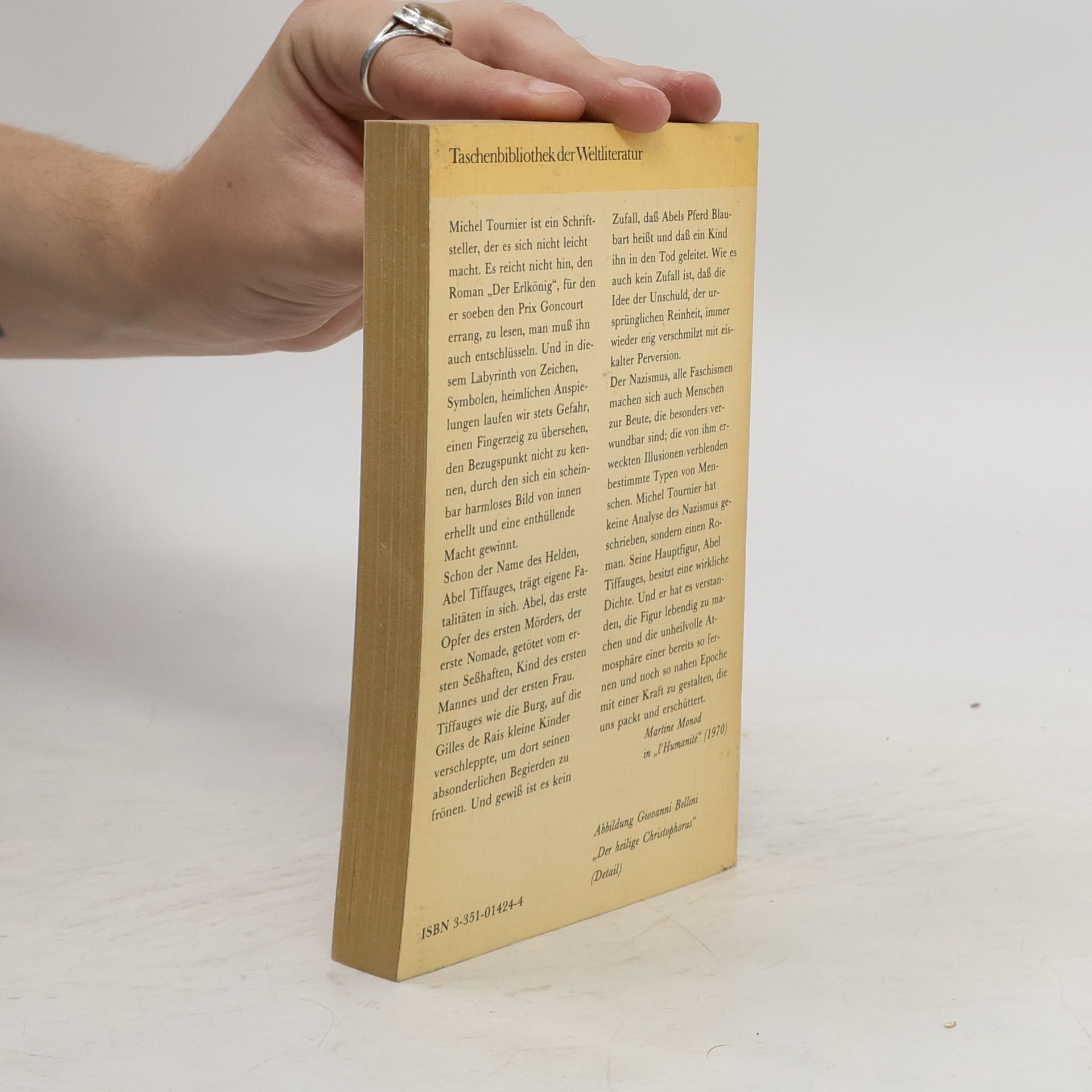 'Wir haben diesen Roman zum Buch des Monats gewählt', entschied seinerzeit die Darmstädter Jury, 'weil der Versuch eines Franzosen, deutsche Unheimlichkeit in einer phantastisch-realistischen Groteske seinen Landsleuten begreifbar zu machen, auch für deutsche Leser bedeutungsvoll ist.' Wohl nur ein Nicht-Deutscher konnte sich so (un-)befangen an die Nazi-Jahre machen und einen Titelhelden mit dem beziehungsreichen Namen Tiffauges vom Elsaß aus in deutsche Kriegsgefangenschaft schicken, von dort nach Ostpreußen, wo er in der Rominter Heide Tierpfleger von Gnaden des Reichsjägermeisters Göring und schließlich Faktotum in der Nationalpolitischen Erziehungsanstalt 'Kaltenborn' wird. Nebenbei: In keinem deutschsprachigen Nachkriegsbuch finden sich derart brillante und präzise Landschaftsbeschreibungen Ostpreußens wie im 'Erlkönig'.
