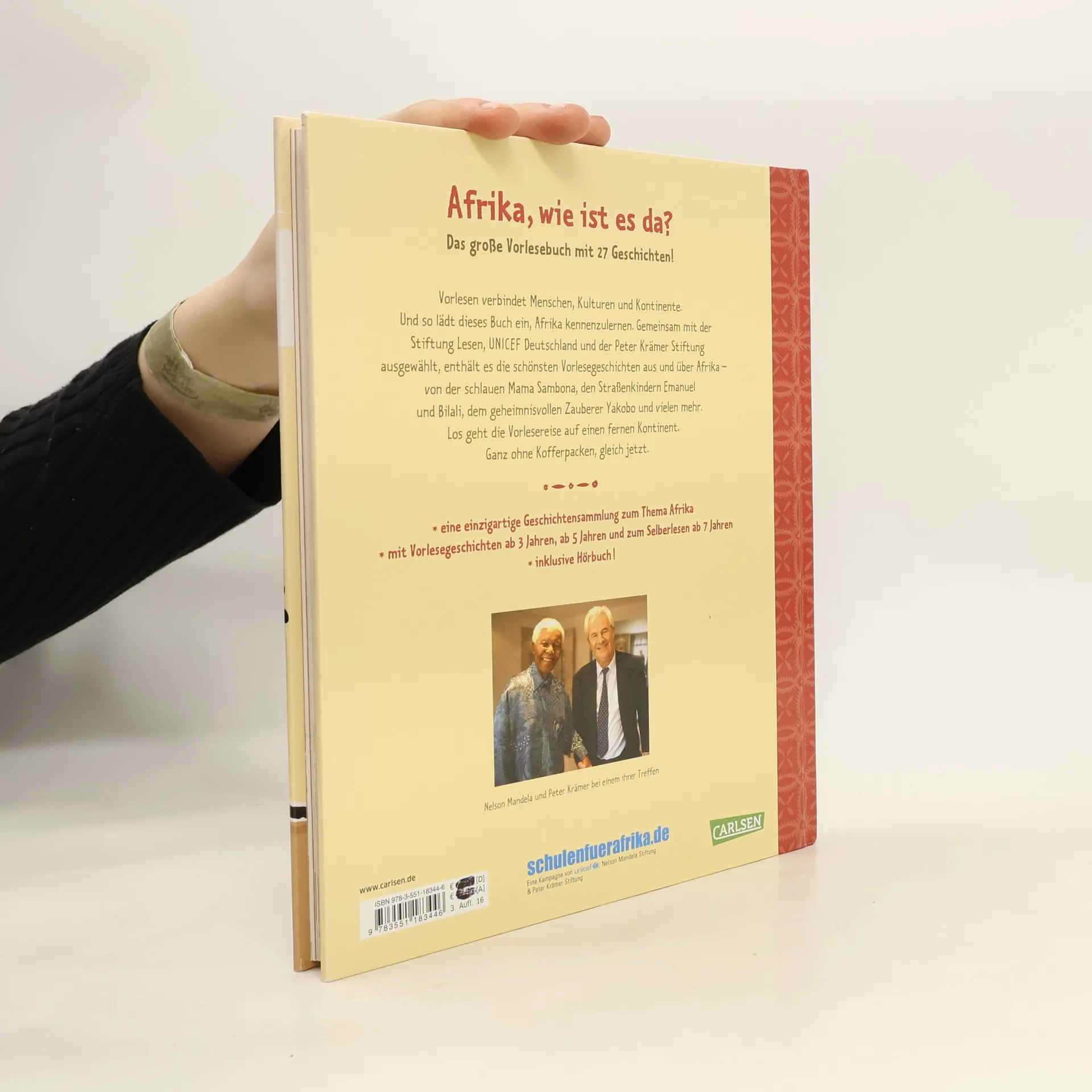Das große Vorlesebuch mit 27 Geschichten! Vorlesen verbindet Menschen, Kulturen und Kontinente. Dieses Buch lädt ein, Afrika kennenzulernen. Gemeinsam mit der Stiftung Lesen, UNICEF Deutschland und der Peter Krämer Stiftung ausgewählt, enthält es die schönsten Vorlesegeschichten aus und über Afrika – von der schlauen Mama Sambona, den Straßenkindern Emanuel und Bilali, dem geheimnisvollen Zauberer Yakobo und vielen mehr. Los geht die Vorlesereise auf einen fernen Kontinent. Ganz ohne Kofferpacken, gleich jetzt ... - eine einzigartige Geschichtensammlung zum Thema Afrika - mit Vorlesegeschichten ab 3 Jahren, ab 5 Jahren und zum Selberlesen ab 7 Jahren - inklusive Hörbuch!