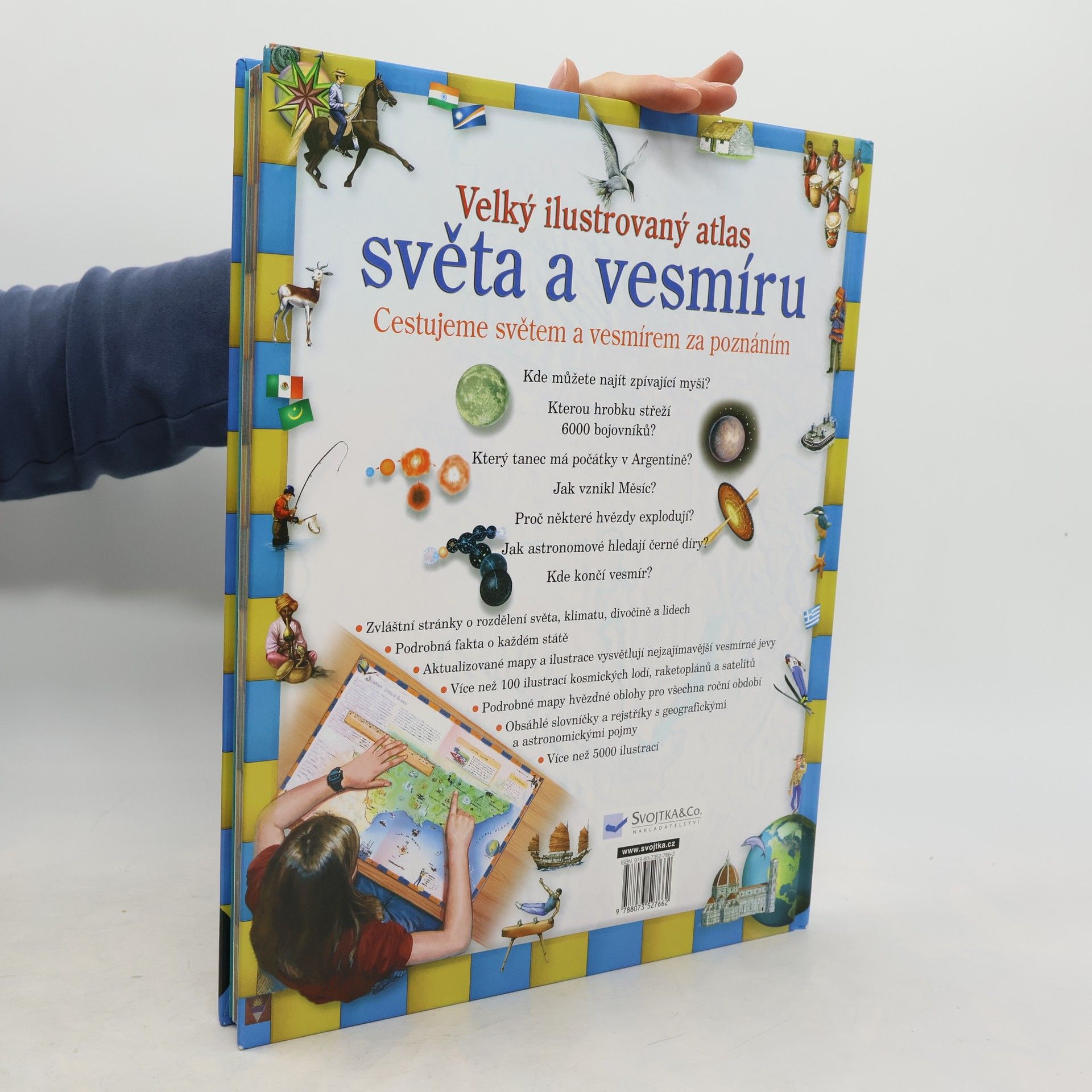 Tato kniha naučí děti aktivně studovat a používat různé typy map. Obsahuje velké množství ilustrací světových míst, lidí, reliéfů a způsobu života. Mimo to se s ní za pomoci barevných obrázků a nákresů vydáme i na zábavný výlet napříč celým vesmírem. Knížka obsahuje i praktická cvičení. .