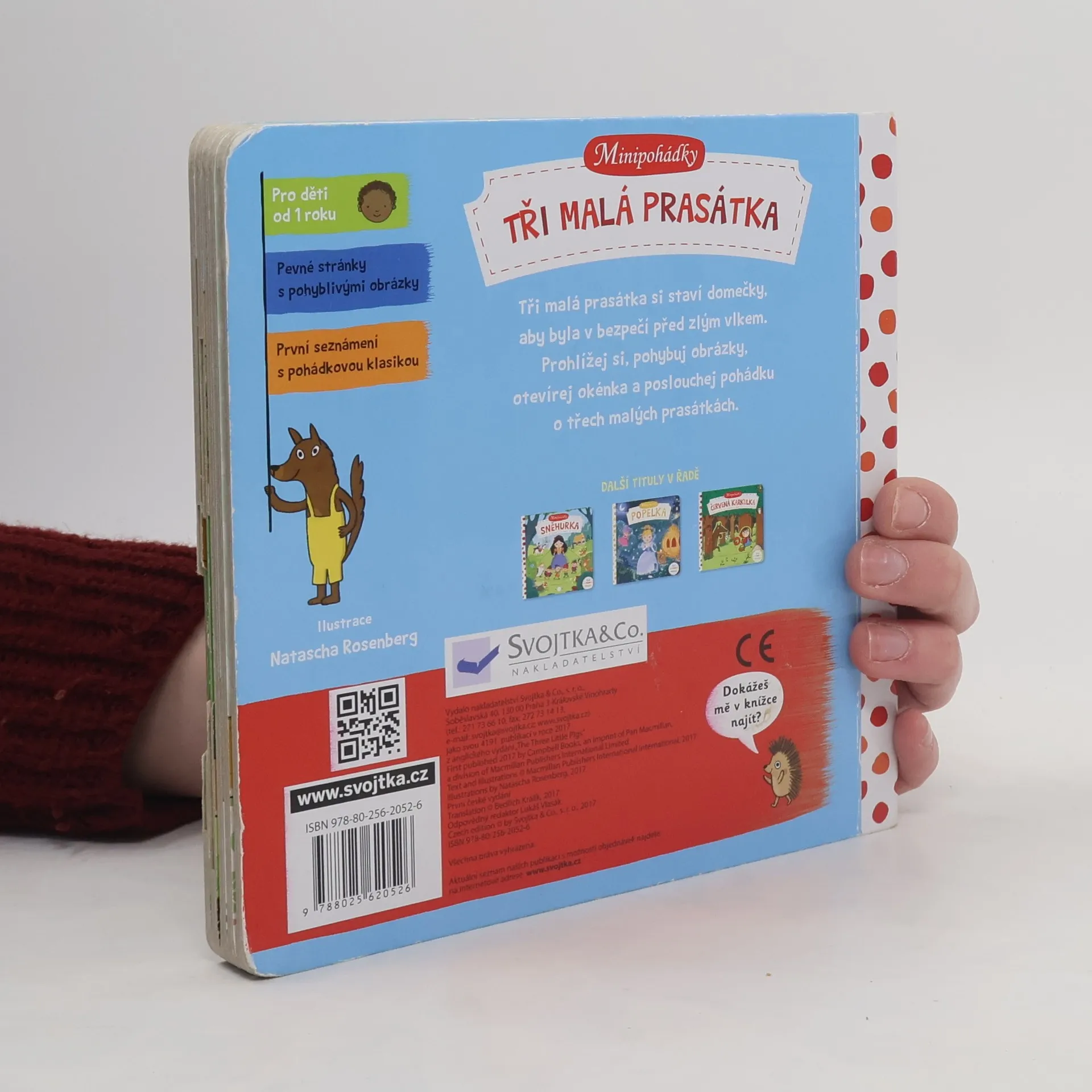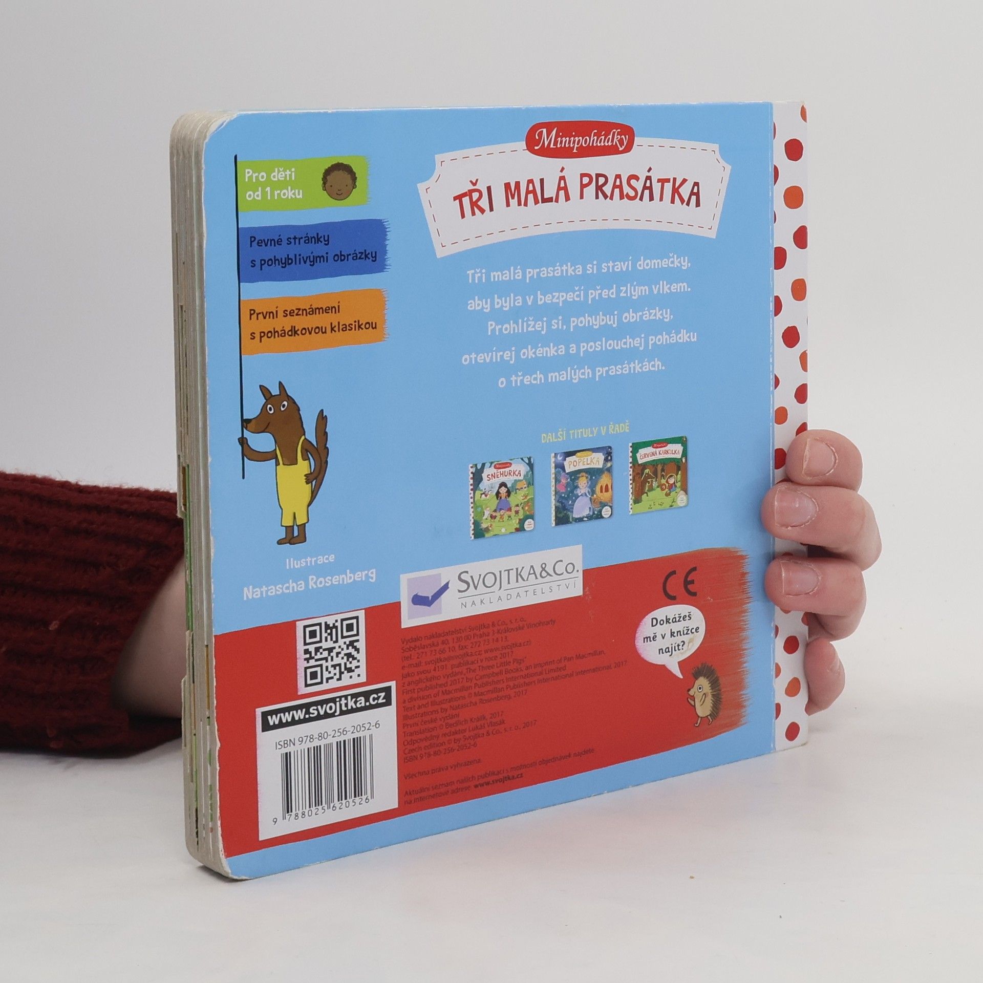 Tato veršovaná minipohádka je určena dětem od jednoho roku. Má pevné stránky s pohyblivými prvky, takže si děti mohou příběh oživit a procvičit si prstíky. Toto malé dětské pohádkové leporelo s pevnými stránkami a pohyblivými obrázky je určeno dětem od jednoho roku a najdete v něm krátkou veršovanou pohádku Tři malá prasátka. Při jejím poslouchání si děti mohou procvičovat svou jemnou motoriku a zároveň si pohádkový příběh oživit.Tak vzhůru do čtení! Minipohádka Tři malá prasátka už na vás čeká!