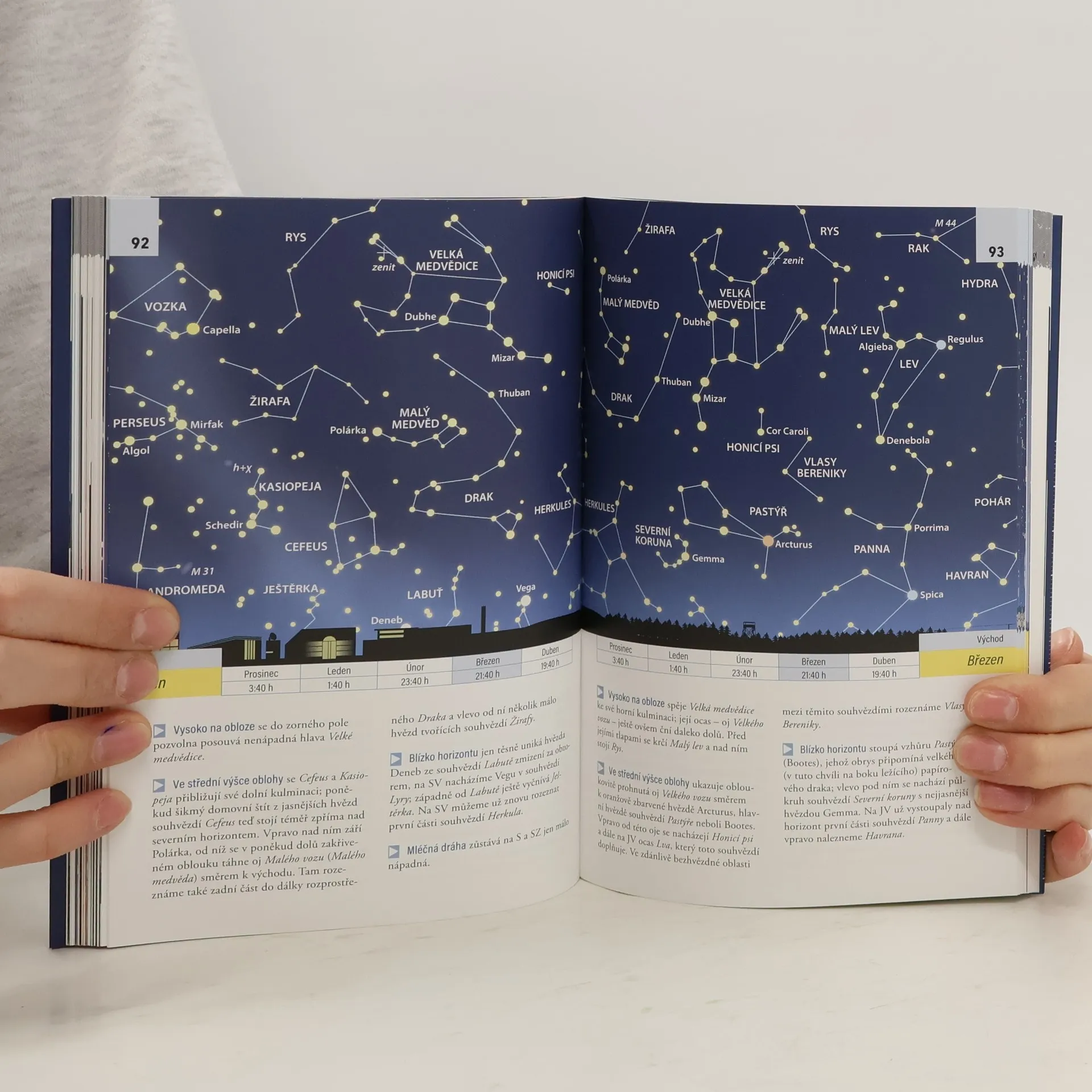 S tímto průvodcem se můžete bez přílišného množství teorie seznámit na obloze nejen s hvězdami a souhvězdími, ale i s planetami. Kromě toho dostanete i řadu podnětů k pozorování jedinečných nebeských objektů, jako jsou dvojhvězdy, hvězdokupy a mlhoviny – buď pouhým okem, nebo přenosným dalekohledem (triedrem), nebo i celkem malým hvězdářským teleskopem s průměrem objektivu 5 či 6 cm. Obzvlášť zajímavým objektem k pozorování je samozřejmě i náš Měsíc, pro který je v této knize přichystaná samostatná mapa. V části knihy s mapami hvězdné oblohy určenými pro severní oblohu jsou pro každý měsíc k dispozici čtyři mapy plus dvanáct map pro ty, kdo cestují na jižní polokouli. Tuto část uzavírá lexikon všech 88 souhvězdí. Navíc je zde i přehled zajímavých nebeských událostí do roku 2031, především o viditelnosti planet, termínech měsíčních úplňků, ale také o zatměních Slunce a Měsíce.