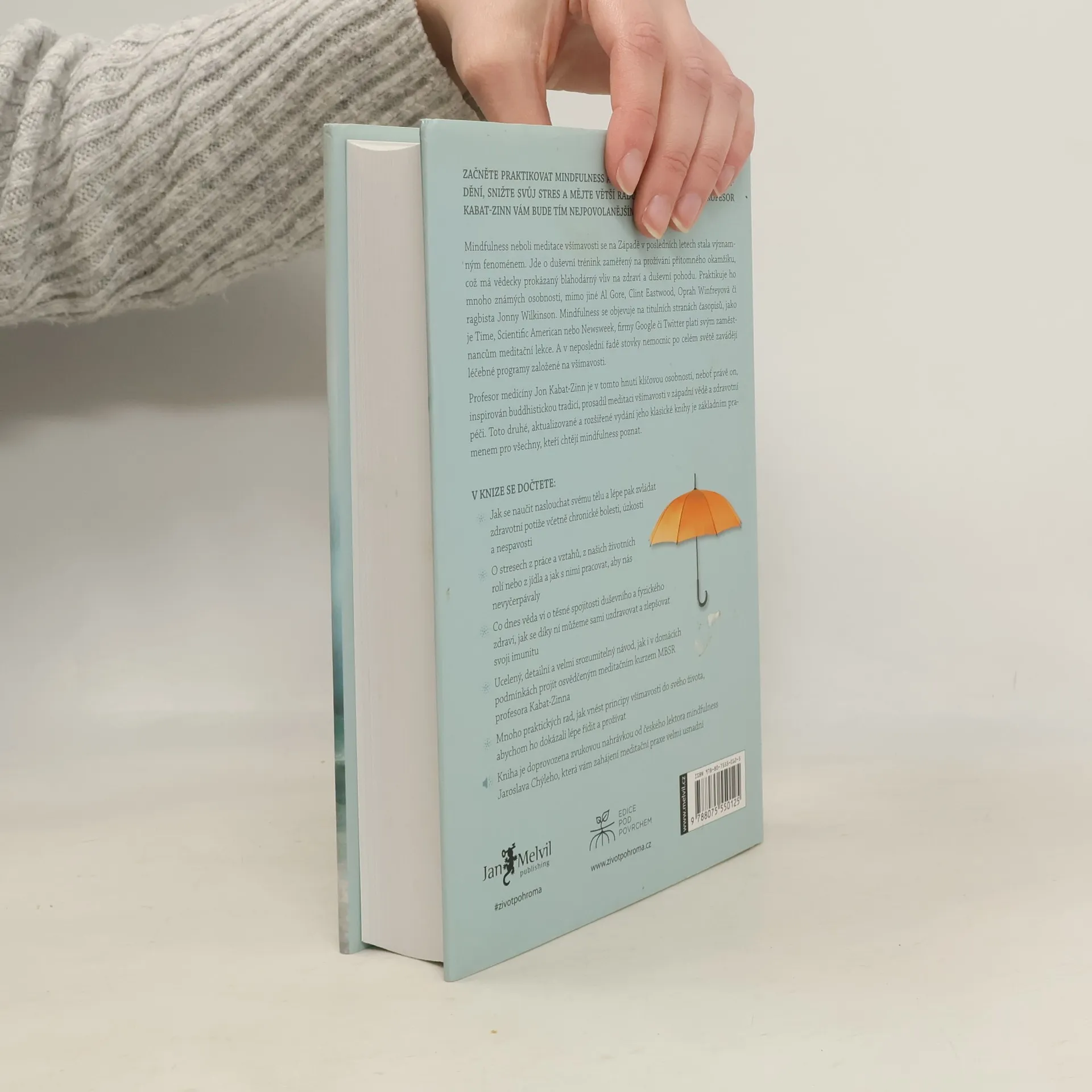 Začněte praktikovat mindfulness a zlepšete své zdraví, soustředění a radost ze života. Profesor Jon Kabat-Zinn, přední odborník v oblasti mindfulness, představuje techniky, které pomáhají čelit stresu, nemoci a bolesti. Meditace, dříve považována za esoterickou, se v posledních letech stala součástí západní kultury, včetně medicíny, psychologie, školství a dokonce i vrcholového sportu. Mnoho známých osobností, jako Bill Clinton či Richard Gere, dnes meditaci aktivně praktikuje. Dlouhodobé výzkumy, včetně studií s využitím magnetické rezonance, ukazují pozitivní vliv mindfulness na tělesné a duševní zdraví, přičemž účinnost těchto programů je srovnatelná s antidepresivy. V posledních 15 letech se počet vědeckých článků na toto téma exponenciálně zvyšuje. Jon Kabat-Zinn přivedl mindfulness do mainstreamu medicíny a v roce 1979 vytvořil program MBSR, který pomohl více než 20 000 pacientům. Tento program je považován za excelentní příklad participativní medicíny, kde se pacient aktivně podílí na prevenci nemocí a zlepšení zdraví. Kniha, která vyšla poprvé před 25 lety, byla nedávno revidována a doplněna o nové poznatky. Obsahuje praktické postupy založené na Kabat-Zinnově programu MBSR a zvukový materiál, který podporuje práci s vlastní myslí.