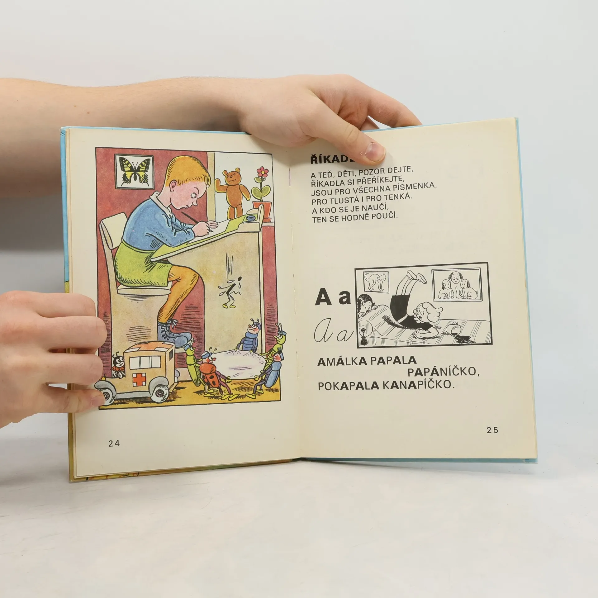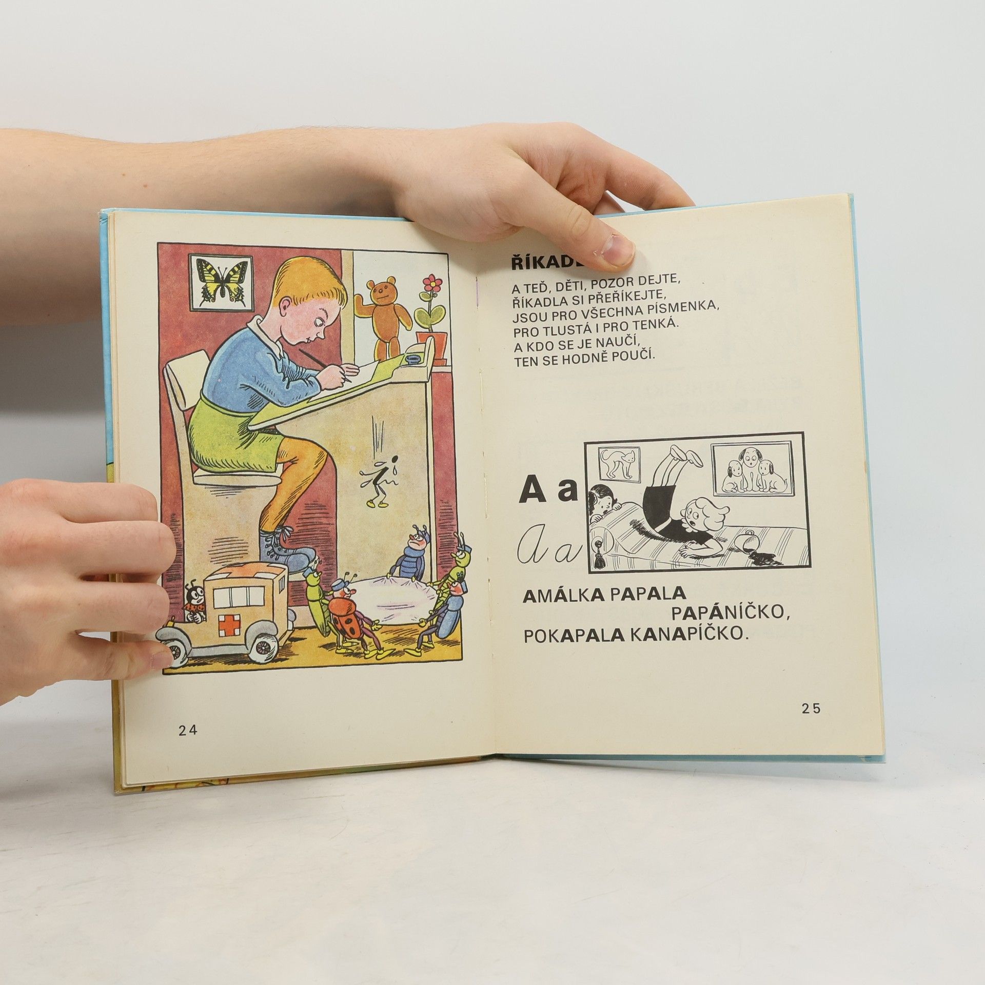 Průvodcem po slabikáři je postavička Ferdy Mravence, který představuje jednotlivá písmena říkankou a didaktickým vyprávěním ozřejmuje správné návyky při psaní. Velká písmena a množství ilustrací předurčují knížku k prvnímu čtení pro nejmenší.