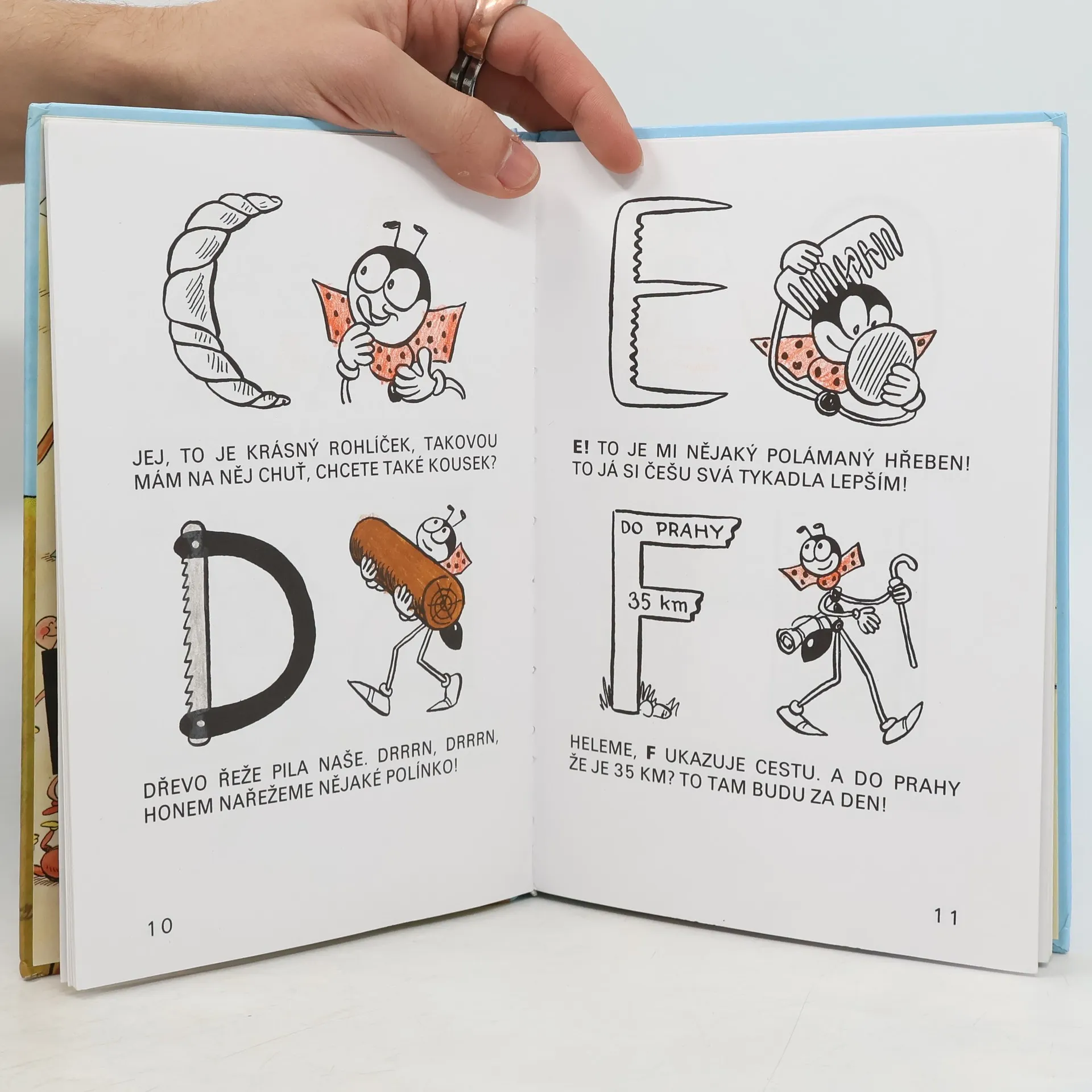 Průvodcem po slabikáři je postavička Ferdy Mravence, který představuje jednotlivá písmena říkankou a didaktickým vyprávěním ozřejmuje správné návyky při psaní. Velká písmena a množství ilustrací předurčují knížku k prvnímu čtení pro nejmenší.